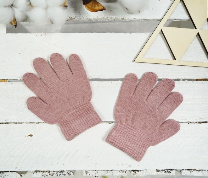 Pudrowe RĘKAWICZKI 5-palczaste gładkie r.98-164