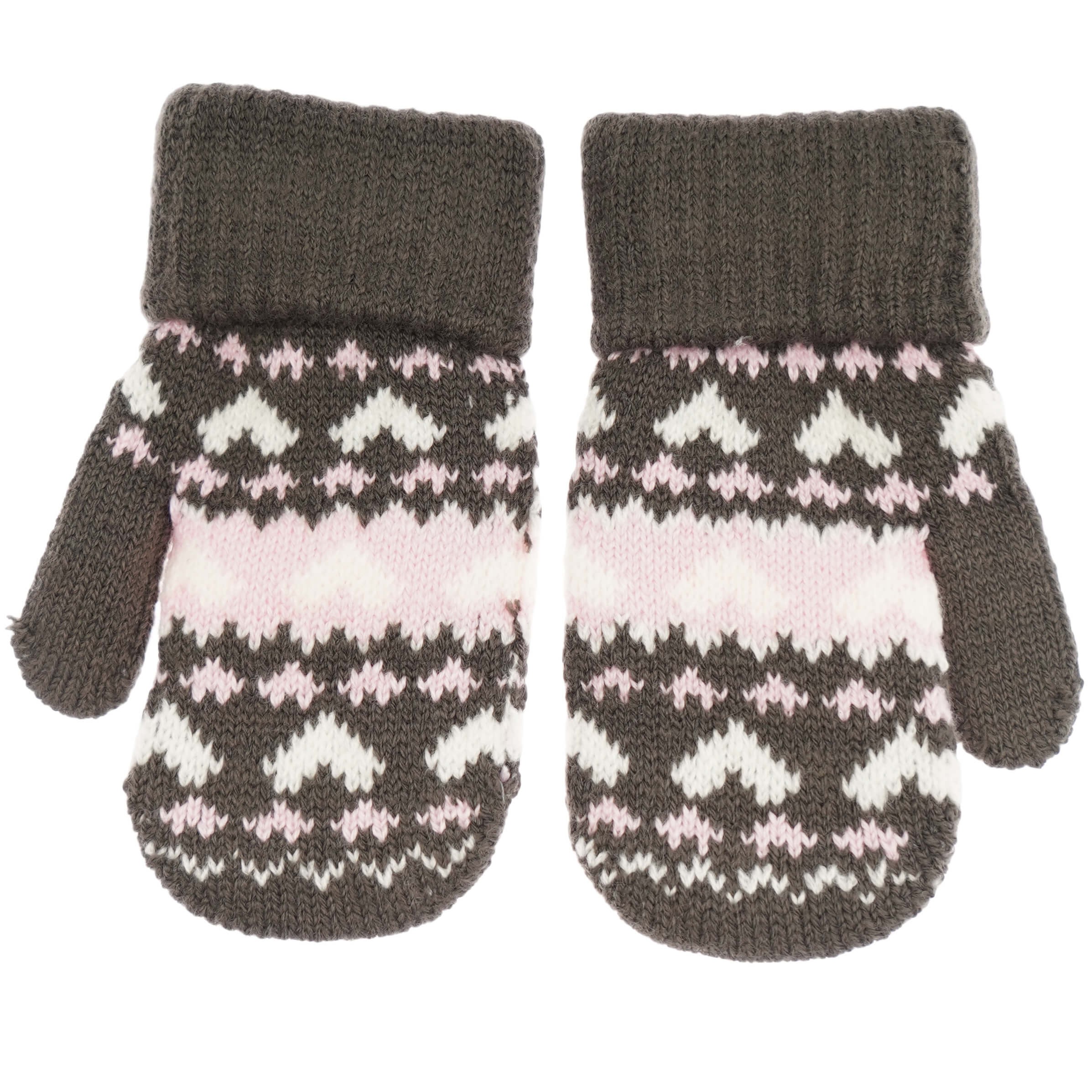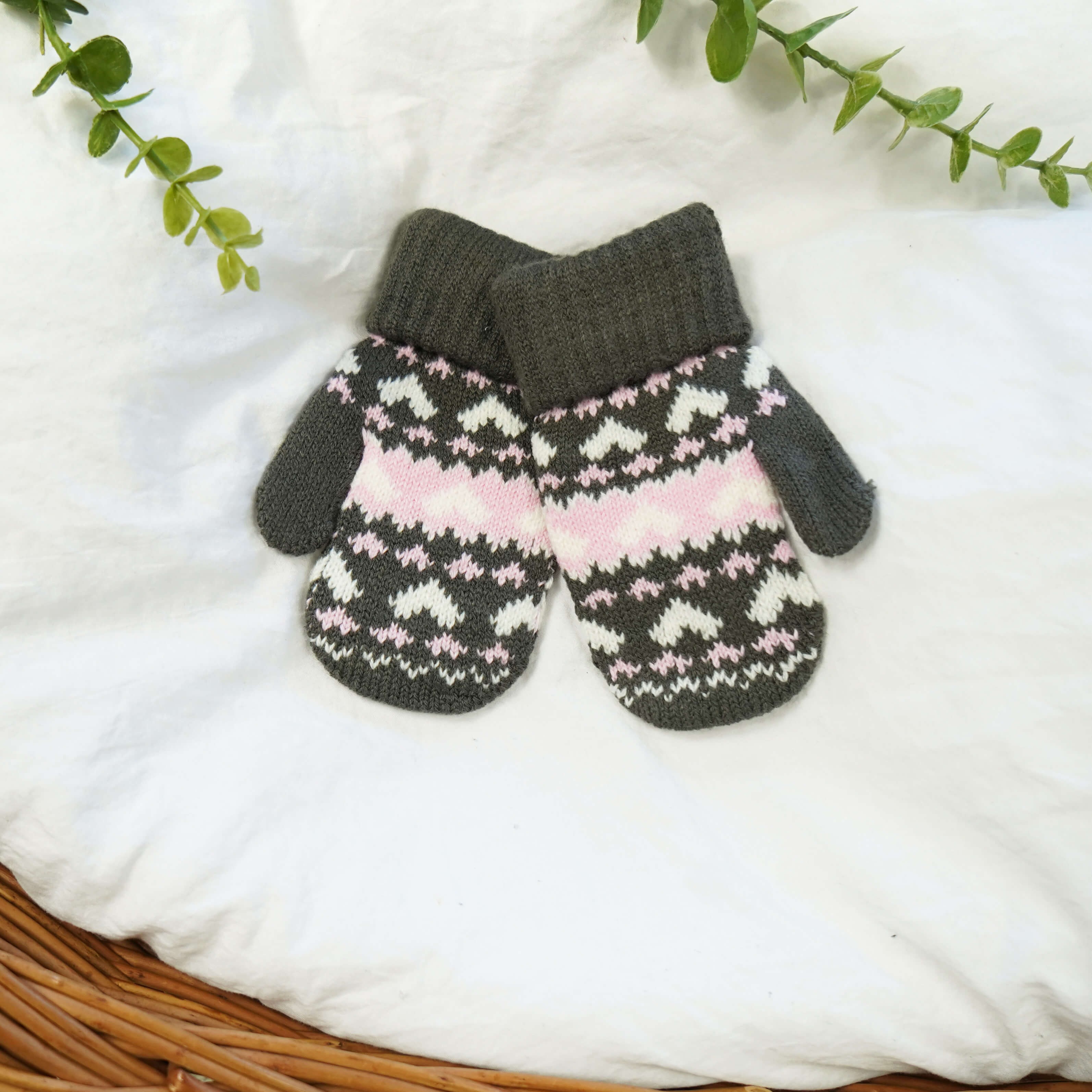 Grafitowe RĘKAWICZKI 1P ciepłe podwijane białe serca 15cm r. 116-122 wzór 013