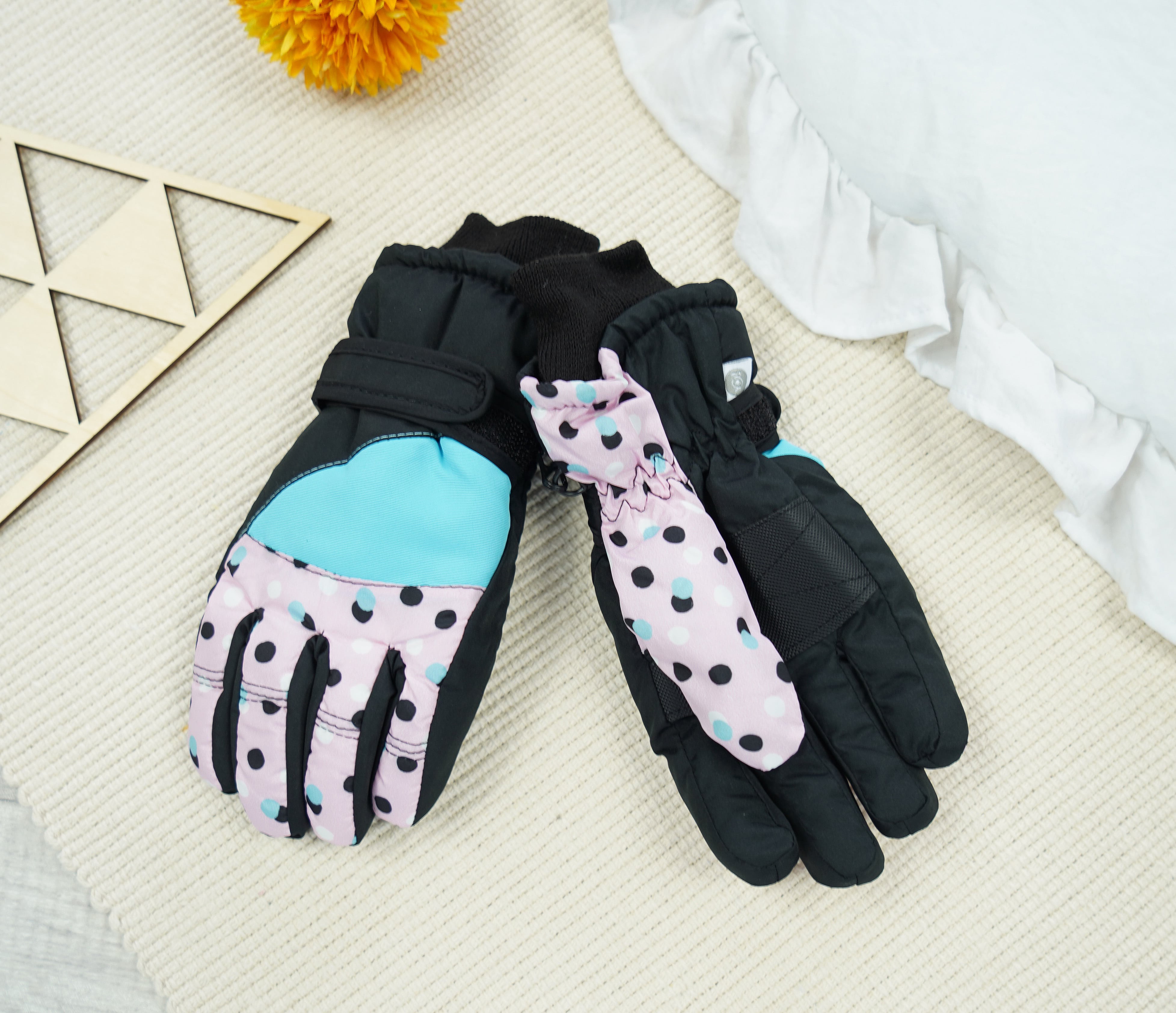 Różowo- niebieskie rękawiczki narciarskie 5P GROSZKI r.110-170