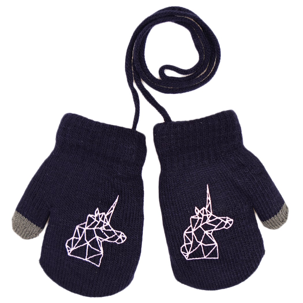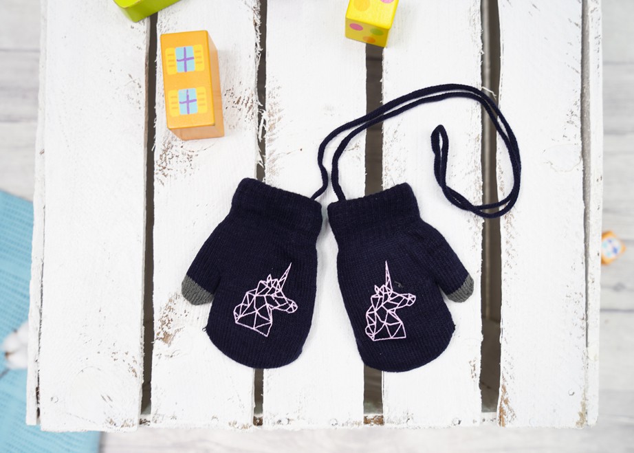 Granatowe RĘKAWICZKI ocieplane 1P na sznurku JEDNOROŻEC RK-36