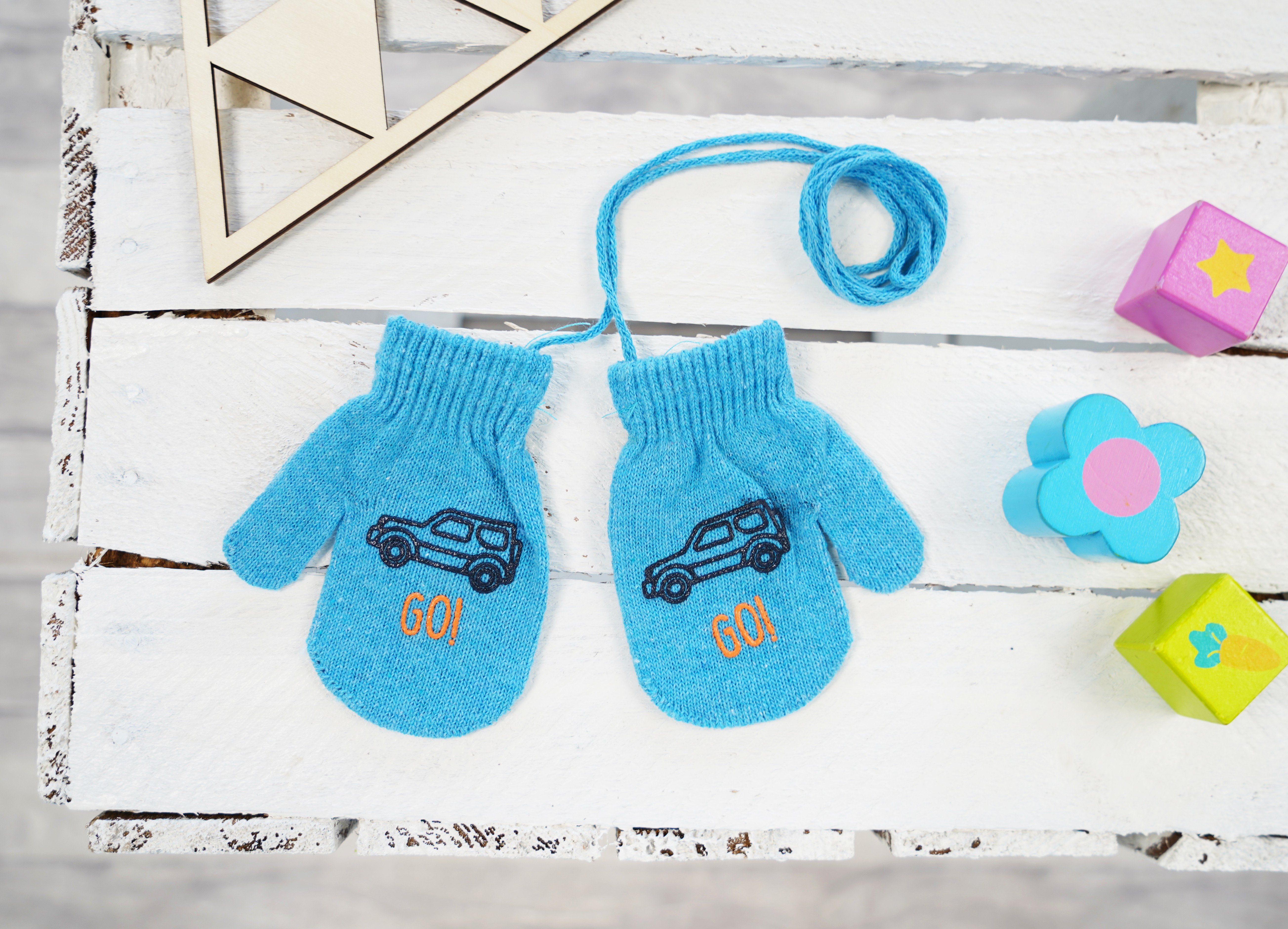 Turkusowe RĘKAWICZKI 1P na sznurku AUTO GO! r. 56-86
