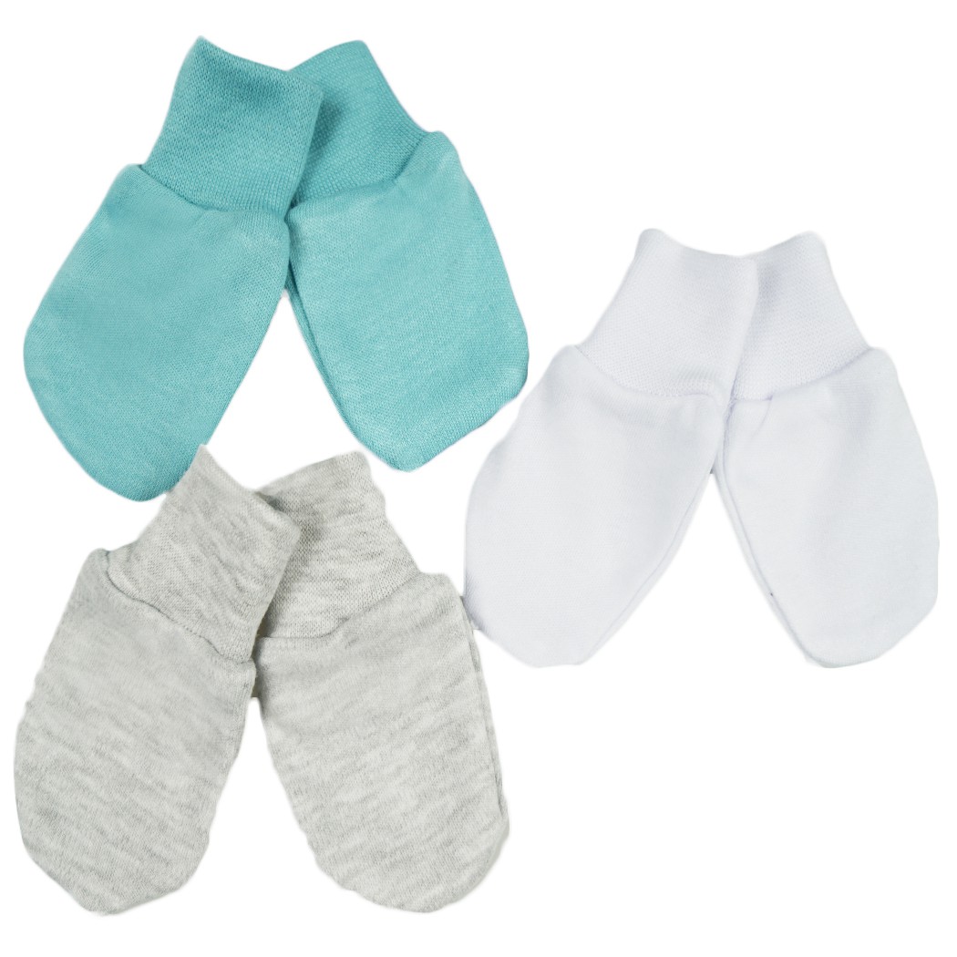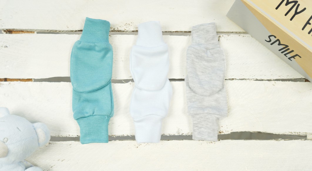 3PAK Rękawiczek dla noworodka wykonanych z mięciutkiej bawełny wykończonych bardzo delikatnym ściągaczem. Łapki niemowlęce ochronią dłonie Twojego maluszka a dodatkowo chronią delikatną buzię przed zadrapaniem.