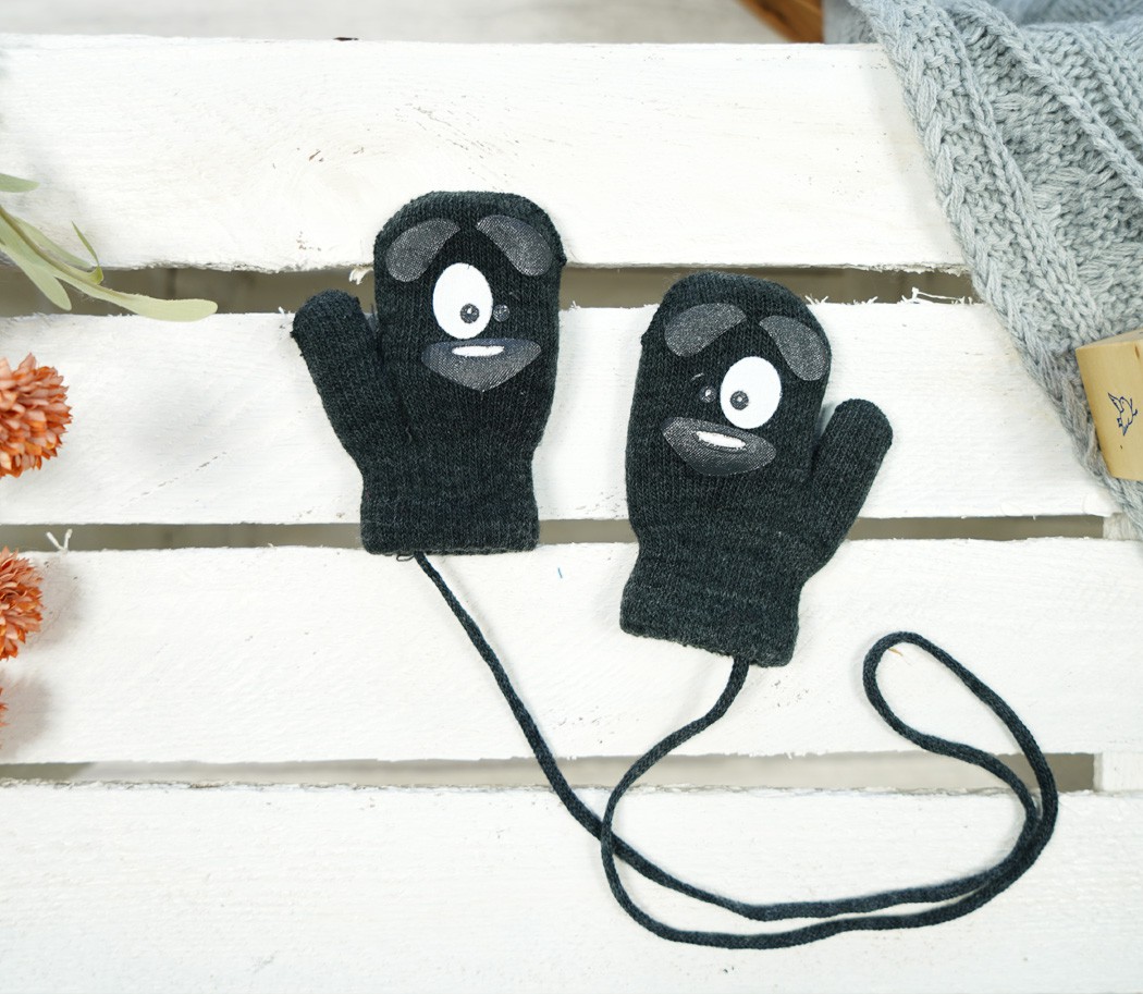 Grafitowe RĘKAWICZKI ciepłe 1P na sznurku PIES r. 98-104