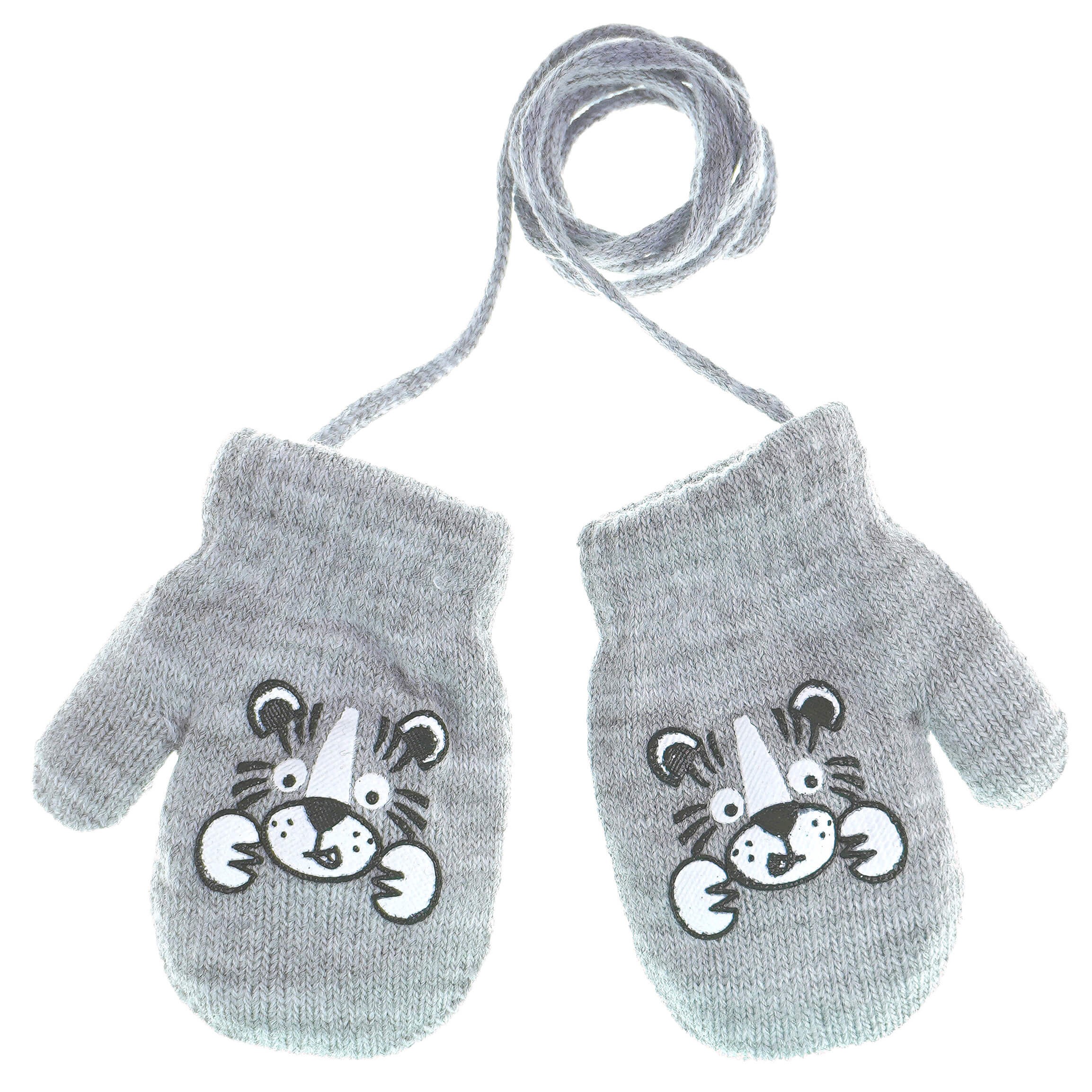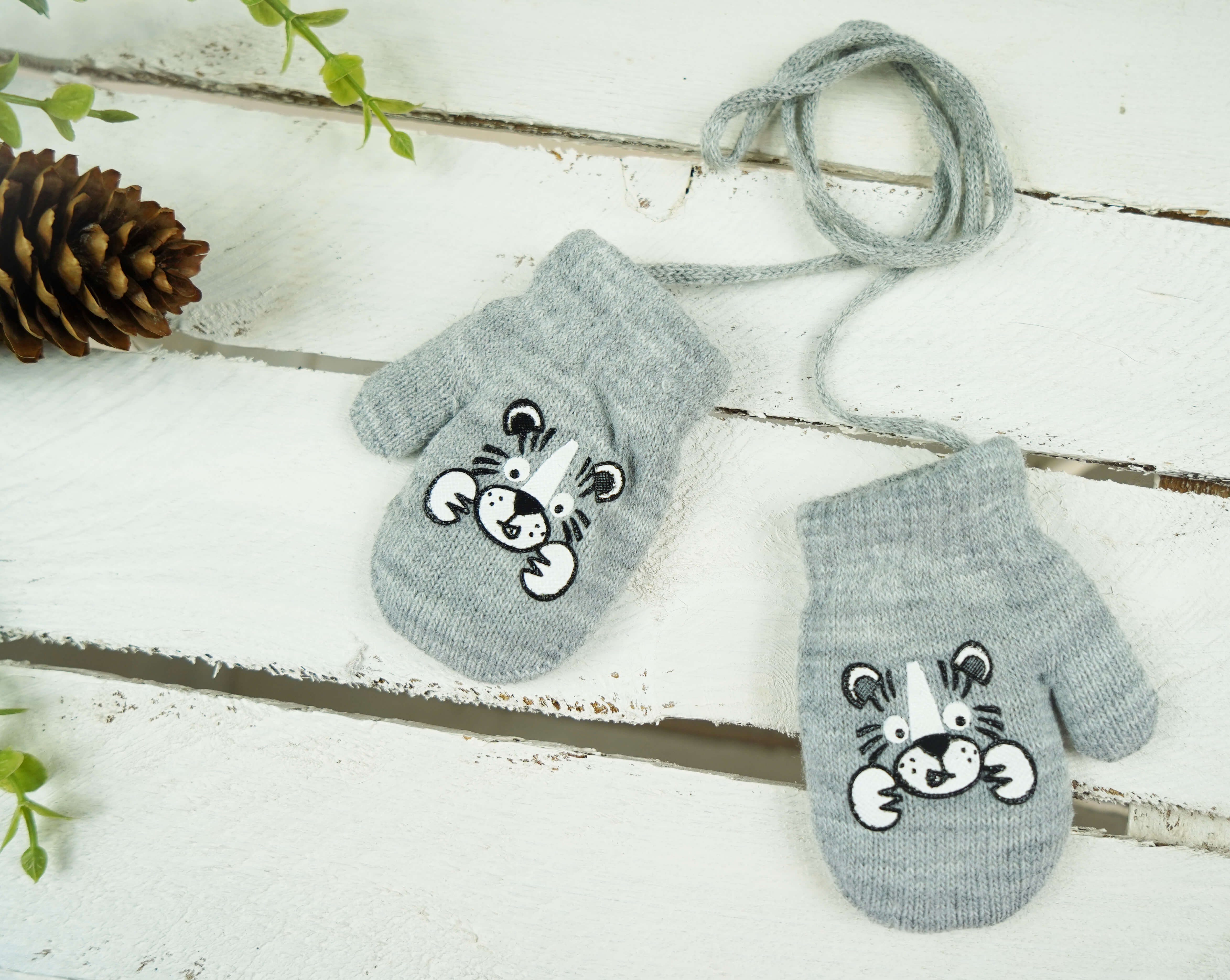 Szare RĘKAWICZKI ciepłe 1P na sznurku TYGRYSEK r. 56-86