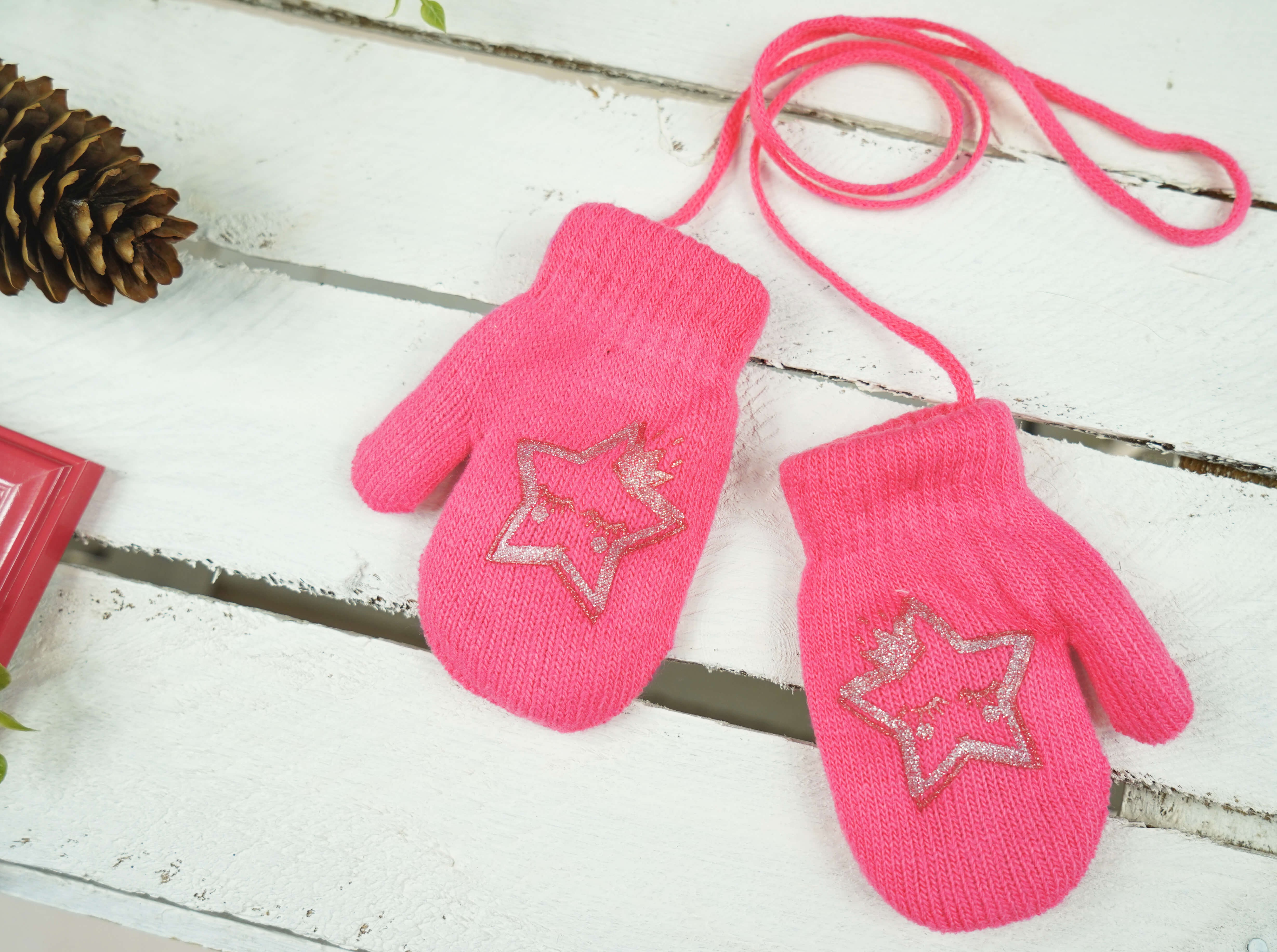 Malinowe RĘKAWICZKI ciepłe 1P na sznurku GWIAZDKA r. 98 104