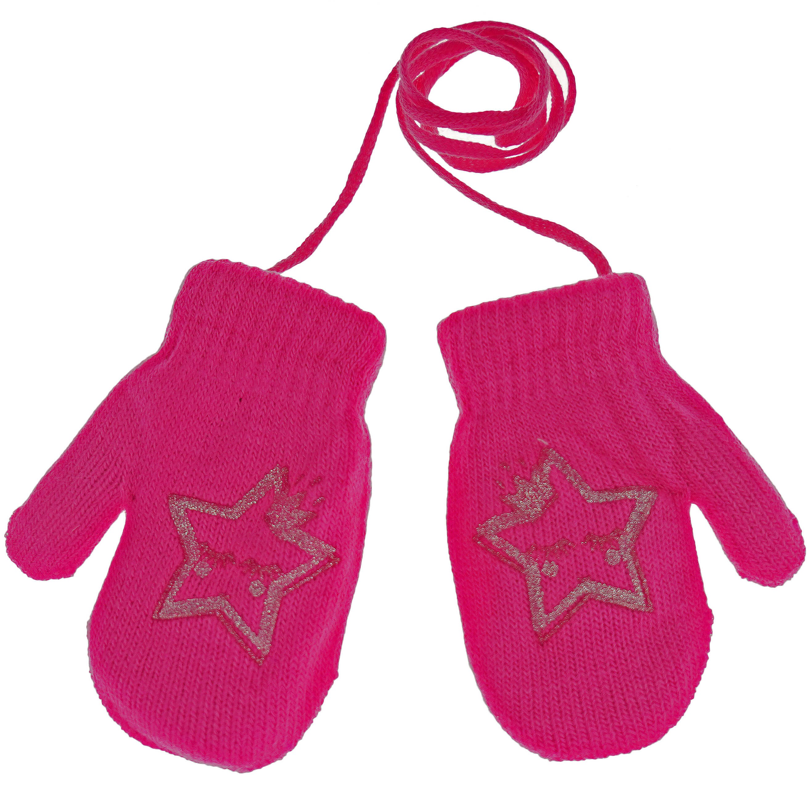 Amarantowe RĘKAWICZKI ciepłe 1P na sznurku GWIAZDKA r. 98 104