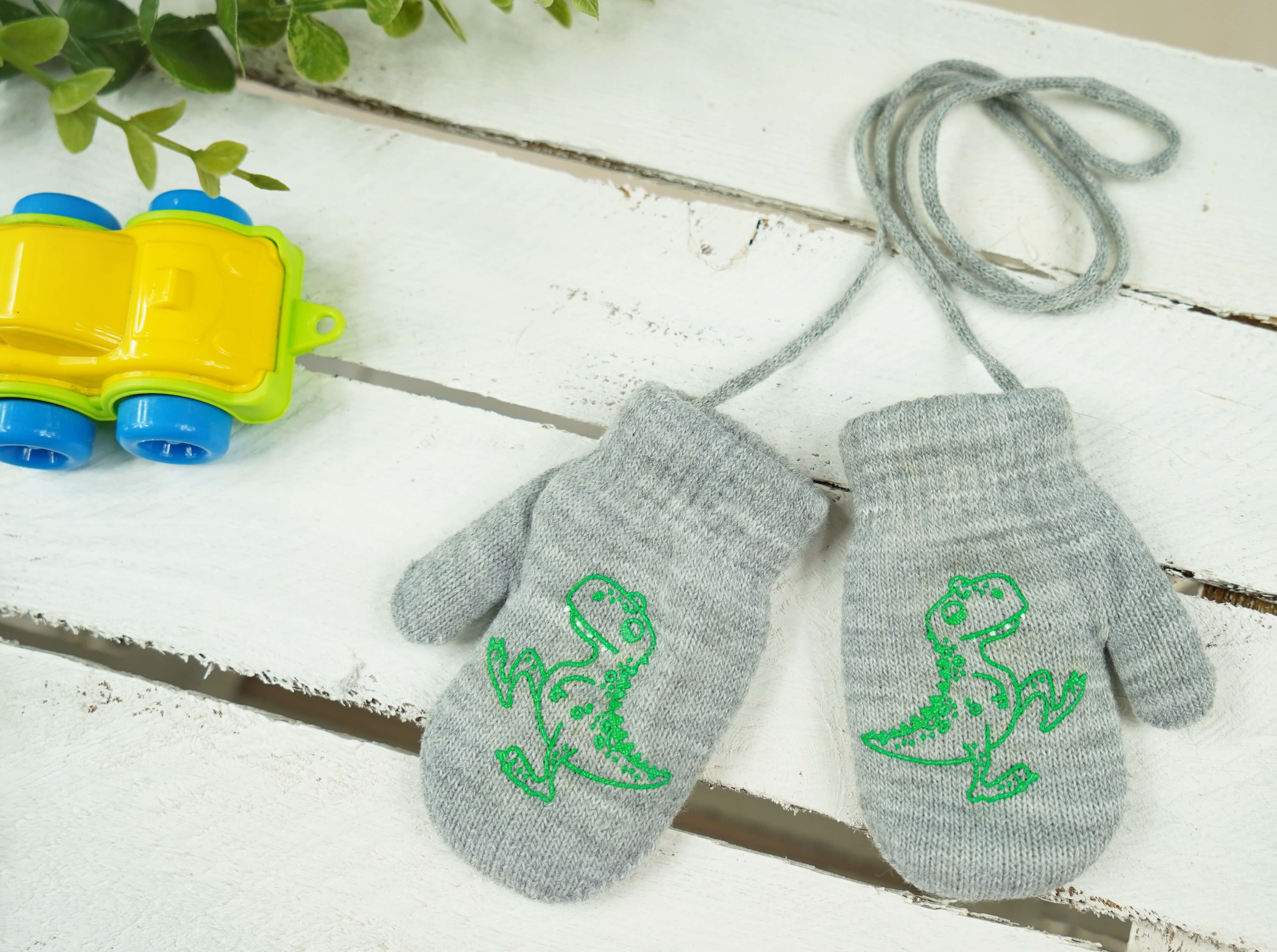 Szare RĘKAWICZKI ciepłe 1P na sznurku DINO r. 98 104