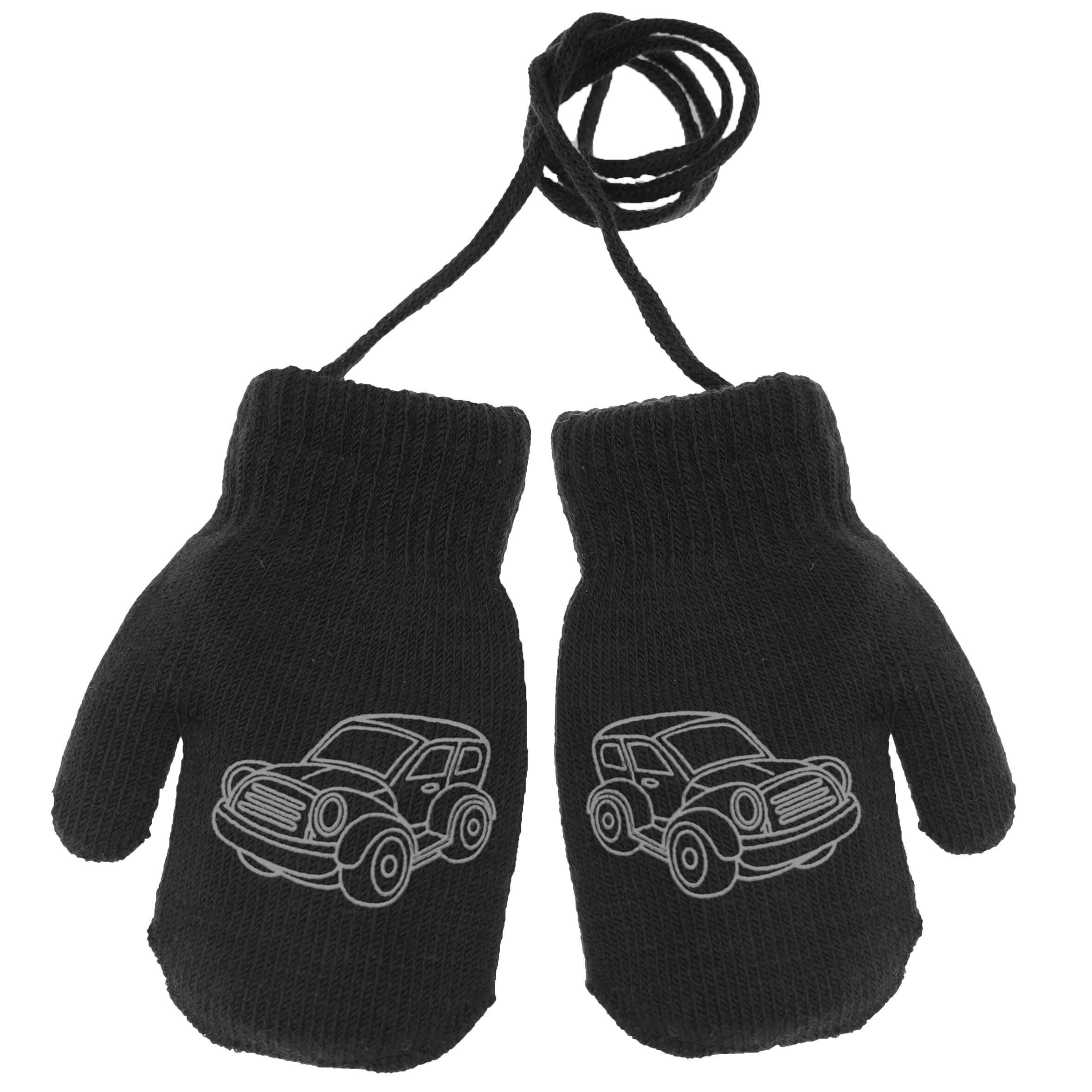 Czarne RĘKAWICZKI ciepłe 1P na sznurku auto r. 110-116