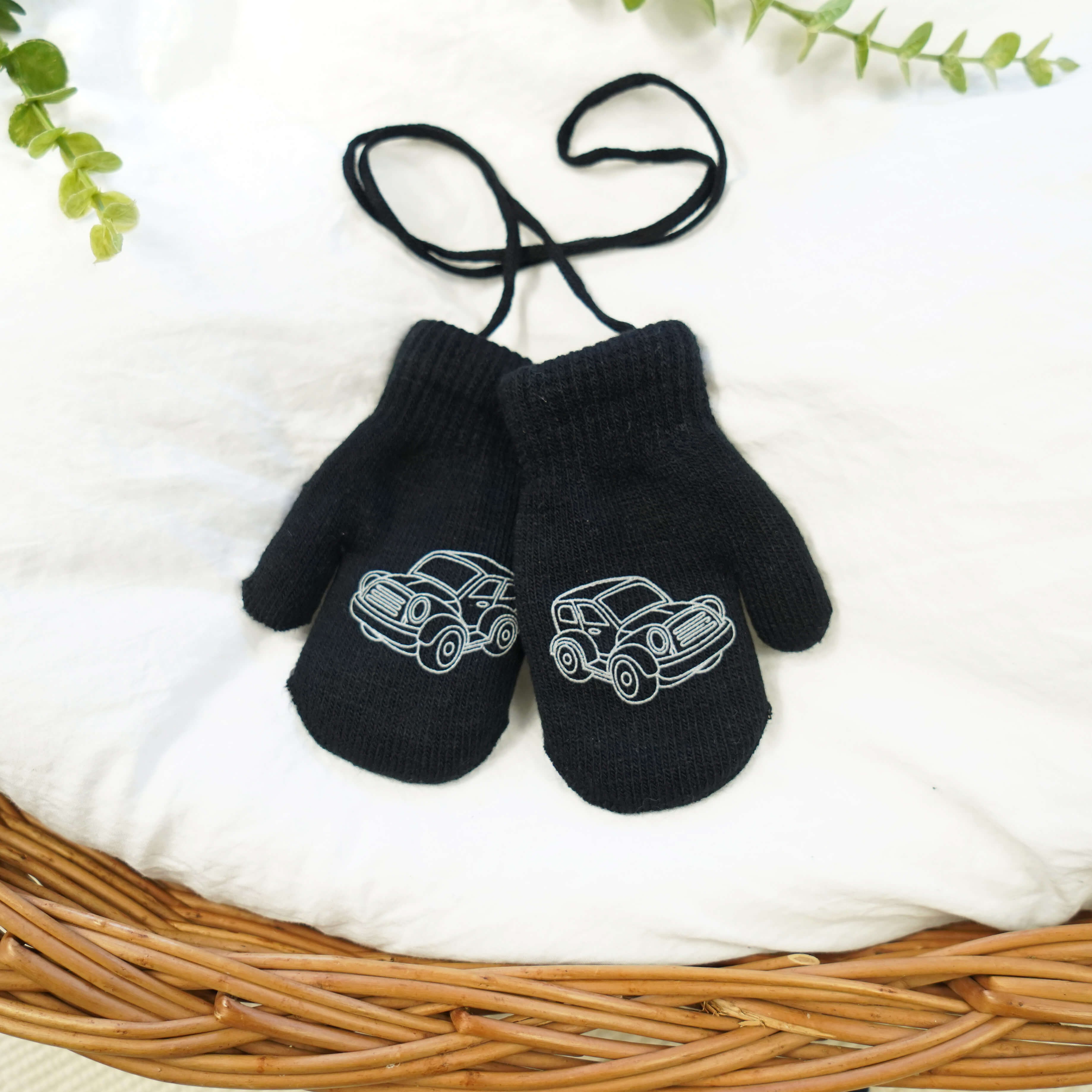 Cieplutkie czarne rękawiczki z autem. W sam raz na pierwsze spotkania maluszka z jesienią i zimą.