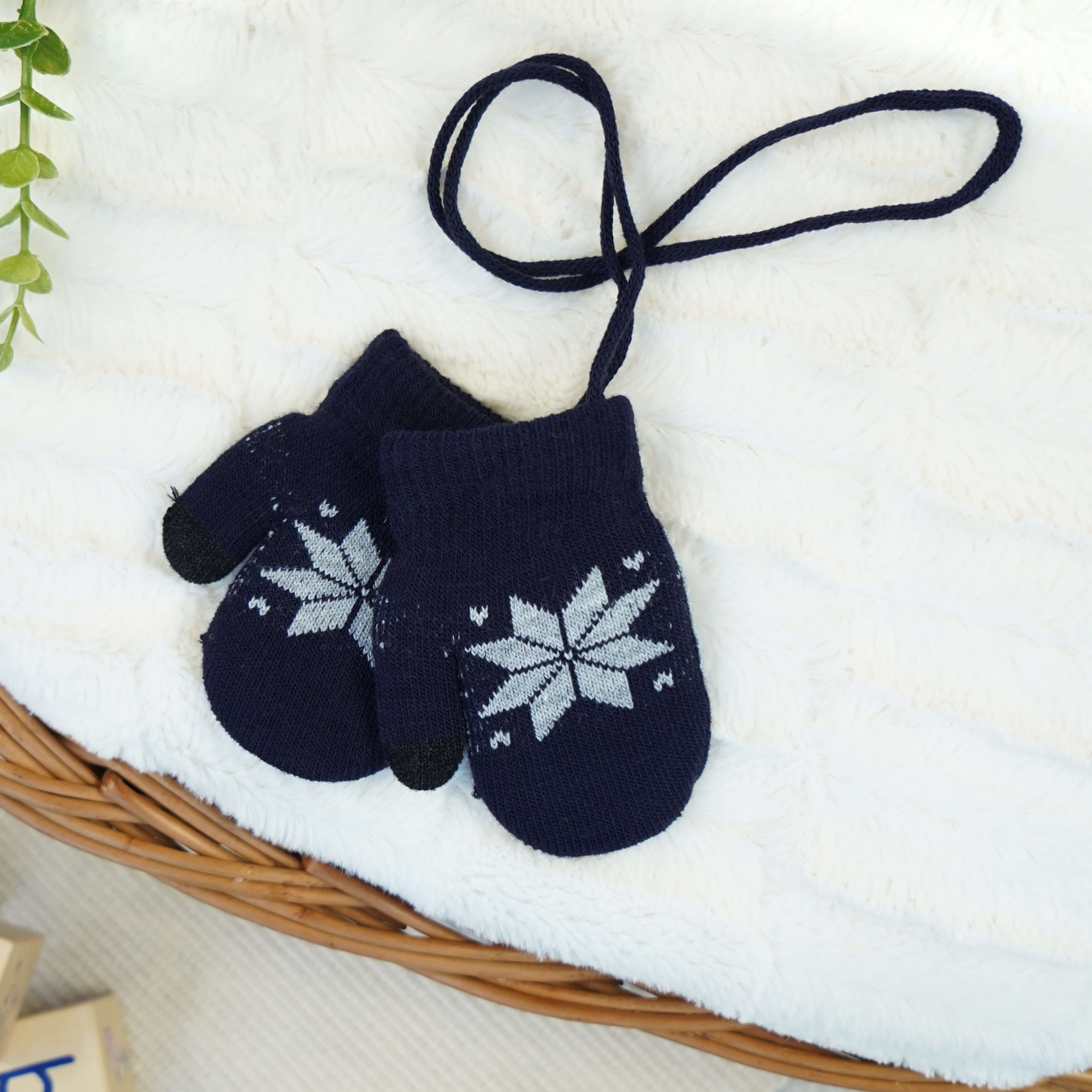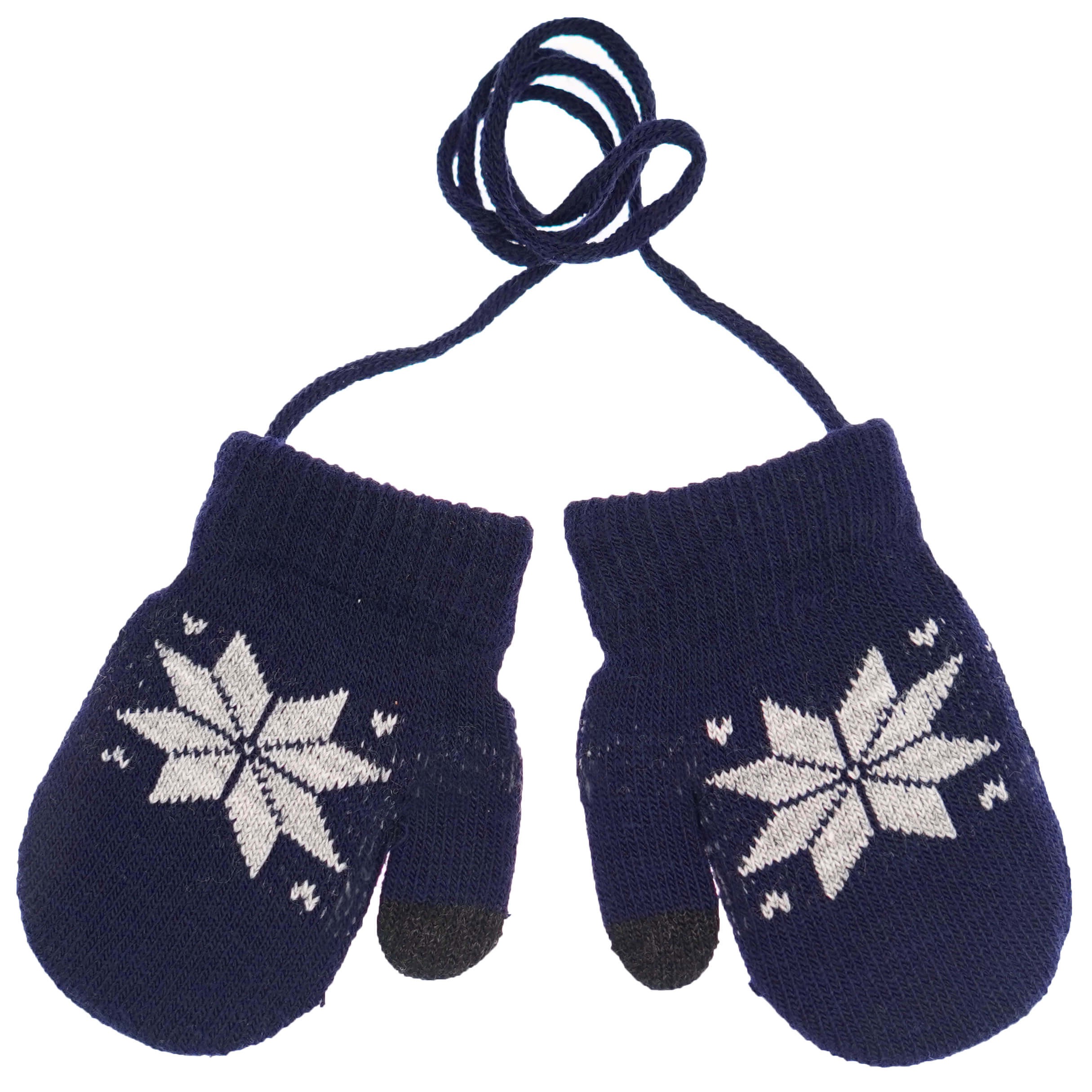 Granatowe RĘKAWICZKI ciepłe 1P sznurek dotyk motyw norweski r. 56-116
