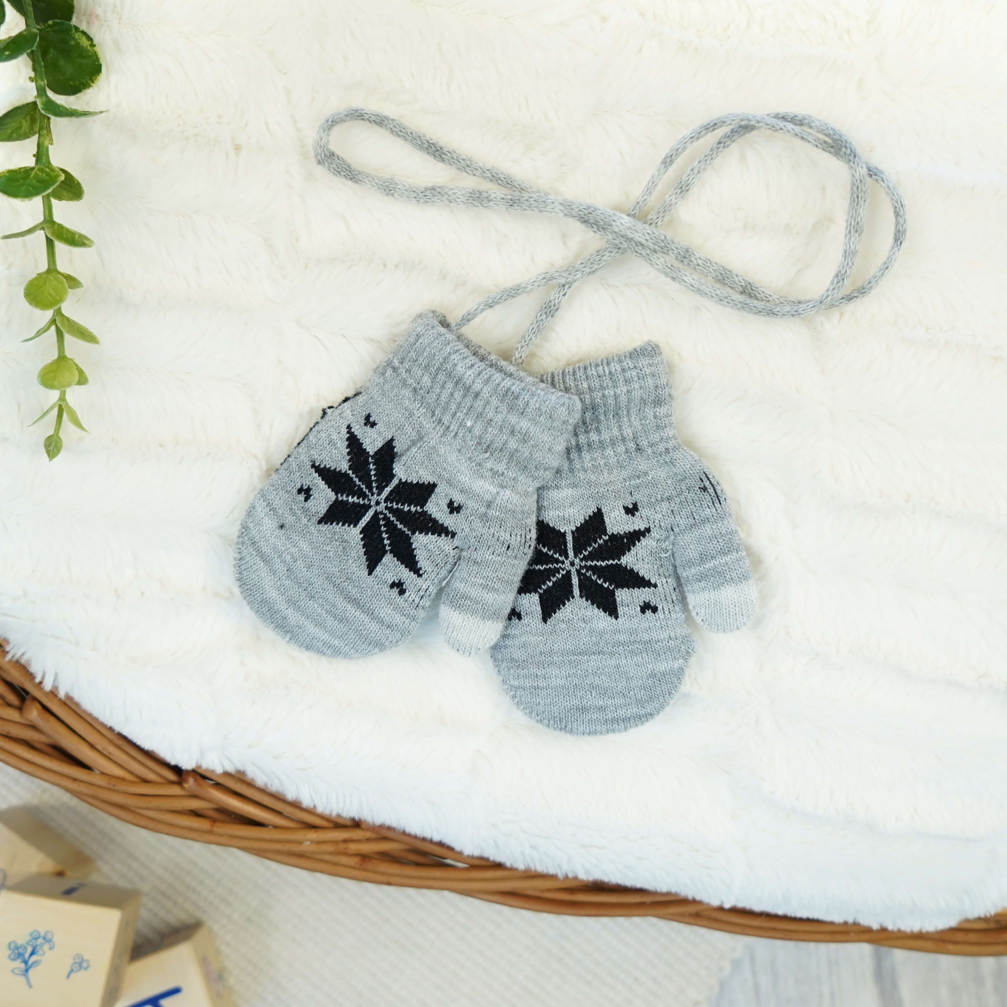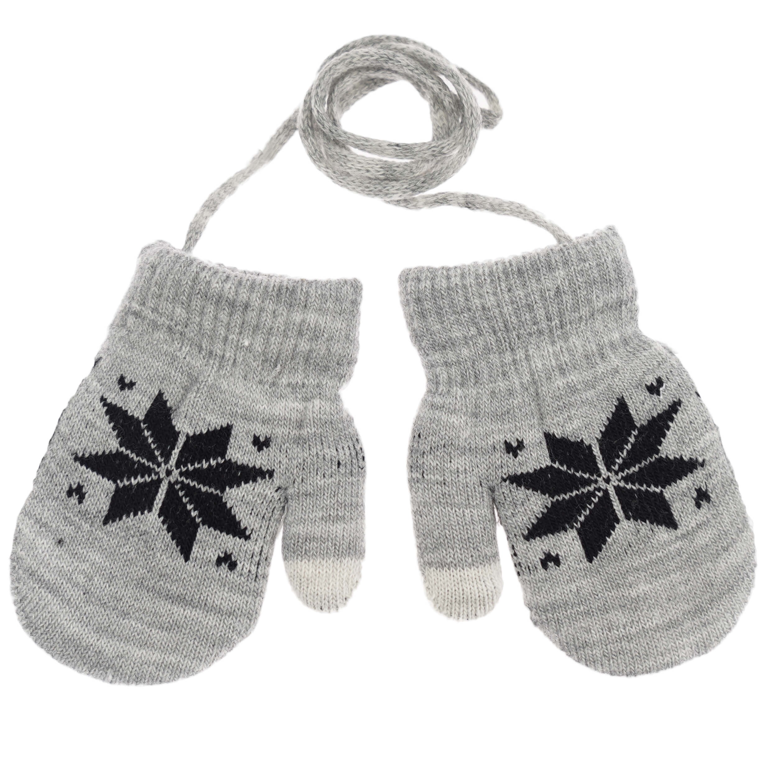 Szare RĘKAWICZKI ciepłe 1P sznurek dotyk motyw norweski r. 56-116