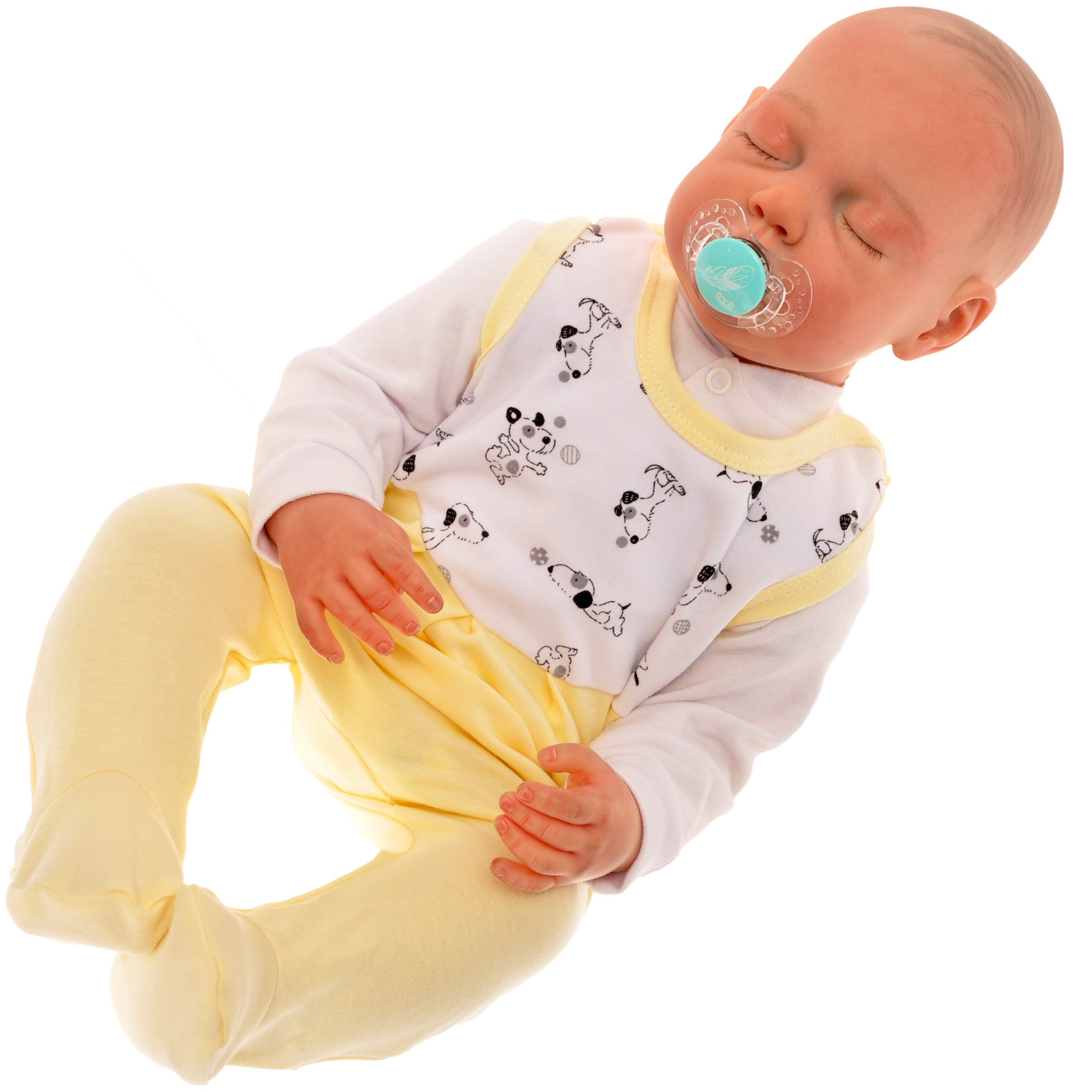 Żółte śpioszki dla wcześniaka w pieski.