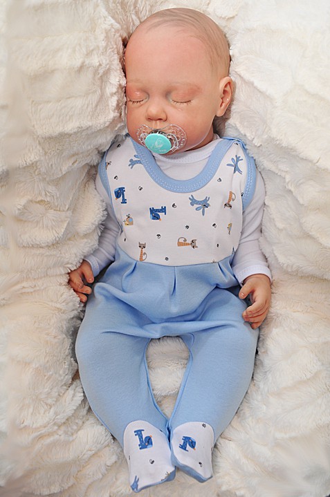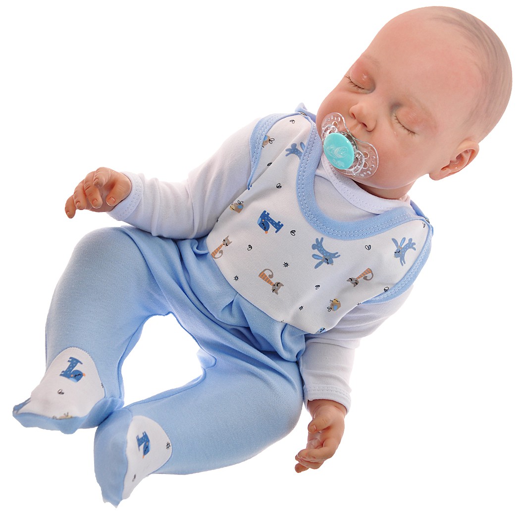 Śpiochy niemowlęce zapinane na ramionach na bezniklowe napki, uszyte z 100% bawełny w kolorze niebieskim. Z przodu góra śpioszków wykonana z szarej bawełny drukowanej w zwierzątka. Dostępne w ofercie klasyczne, przewiewne i wygodne śpioszki dla niemowlaka ze stópkami do codziennego użytku, jak i typowo do snu. Śpioszki niemowlęce są jednymi z najpopularniejszych ubranek dla małych dzieci. Lekkie, wygodne, łatwe do ubrania stanowią idealne rozwiązanie dla malucha, który nosi pieluchę.