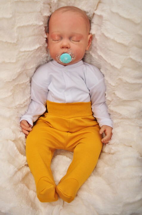 Bezuciskowe półśpiochy ze stópkami z szerokim ściągaczem w pasie, który nie uciska, a jednocześnie utrzymuje ubranko na miejscu. Wykonane z 100% bawełny jednokolorowe półśpioszki dla niemowlaka stanowią niezbędną część garderoby każdego maluszka. Dostępne w ofercie klasyczne półśpioszki dziecięce sprawdzają się idealnie jako dół do body lub kaftanika zarówno jako spodenki na co dzień, jak i typowo do snu.
