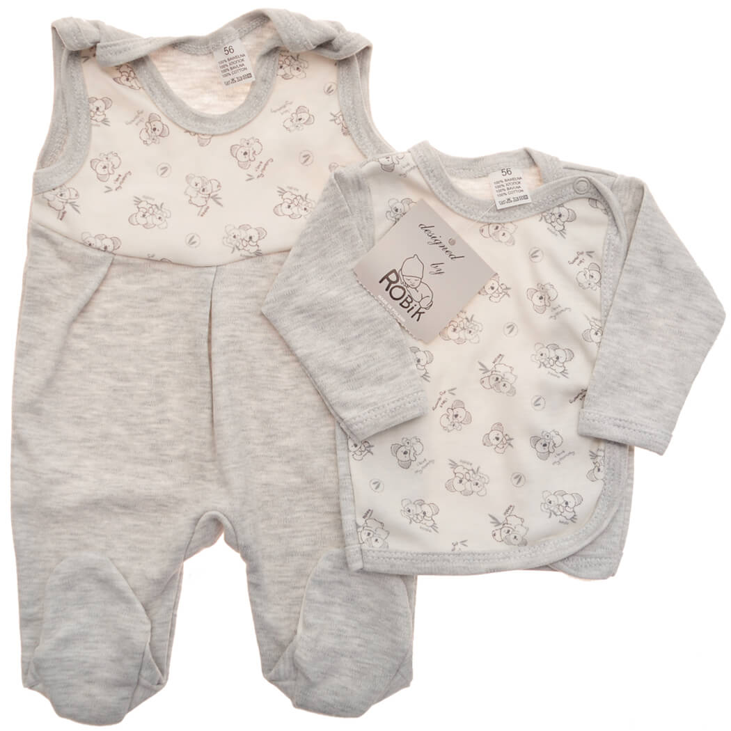 Brązowy komplet niemowlęcy 2-częściowy szary koala wz. 222s - śpiochy plus koszulka kopertowa.