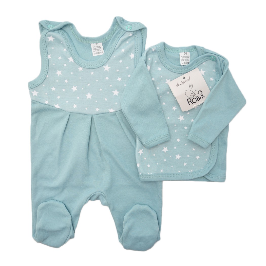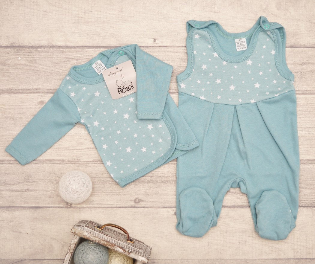 Komplet dla wcześniaka 2-częściowy arktyczny niebieski GWIAZDKI wz. 219i - śpiochy plus koszulka kopertowa.