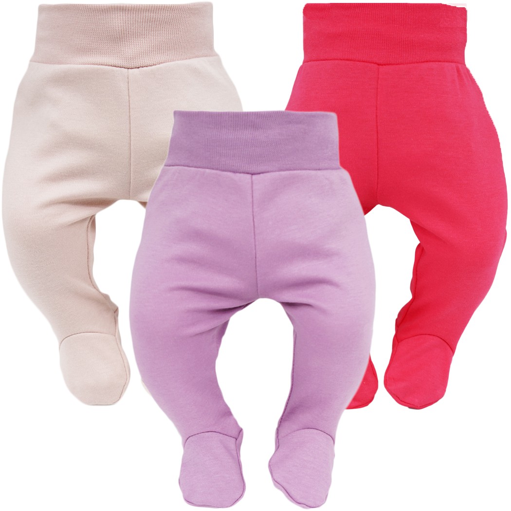 3pak bawełnianych półśpioszków dla dziecka w kolorach: malinowy, wrzosowy, pudrowy róż