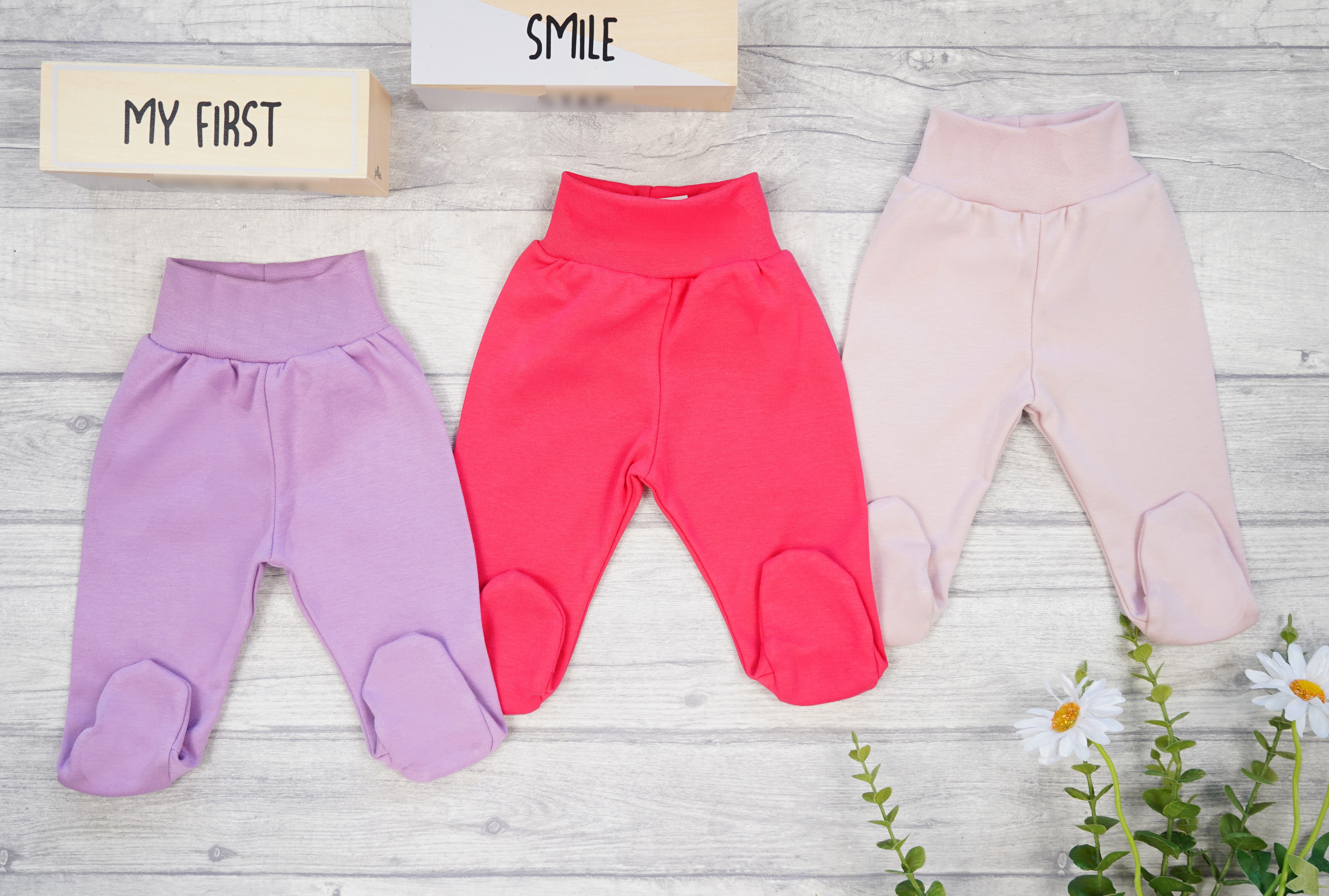 3pak bawełnianych półśpioszków ze stópkami.