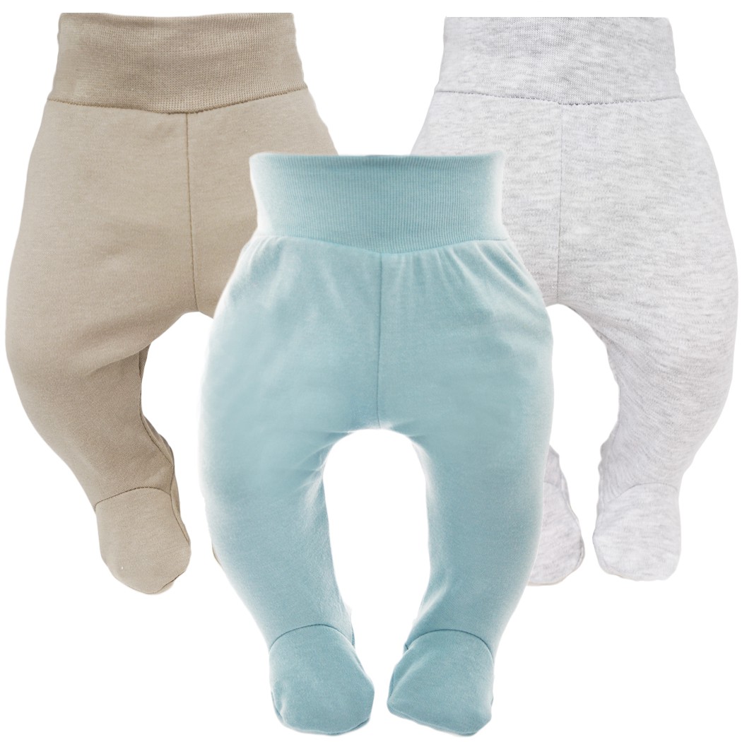 3pak bawełnianych półśpioszków dla wcześniaka w kolorach: iceberg, piaskowy, szary.