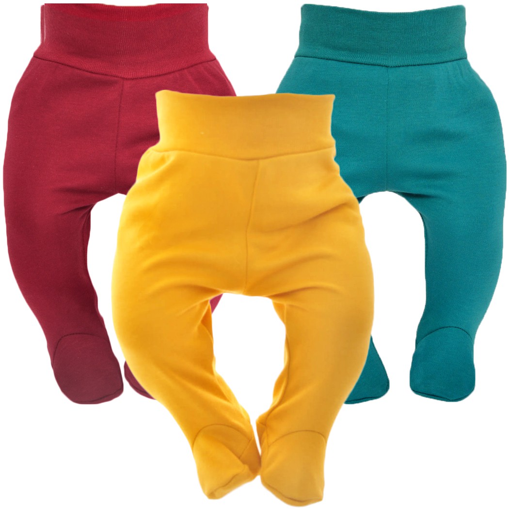 3pak bawełnianych półśpioszków dla dziecka w kolorach: bordowym, musztardowym, butelkowym