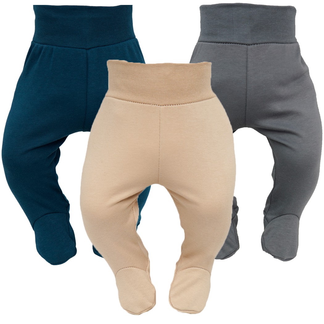 3pak bawełnianych półśpioszków dla dziecka w kolorach: petrol, beżowy, grafitowy