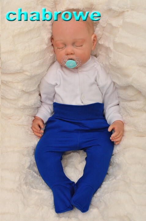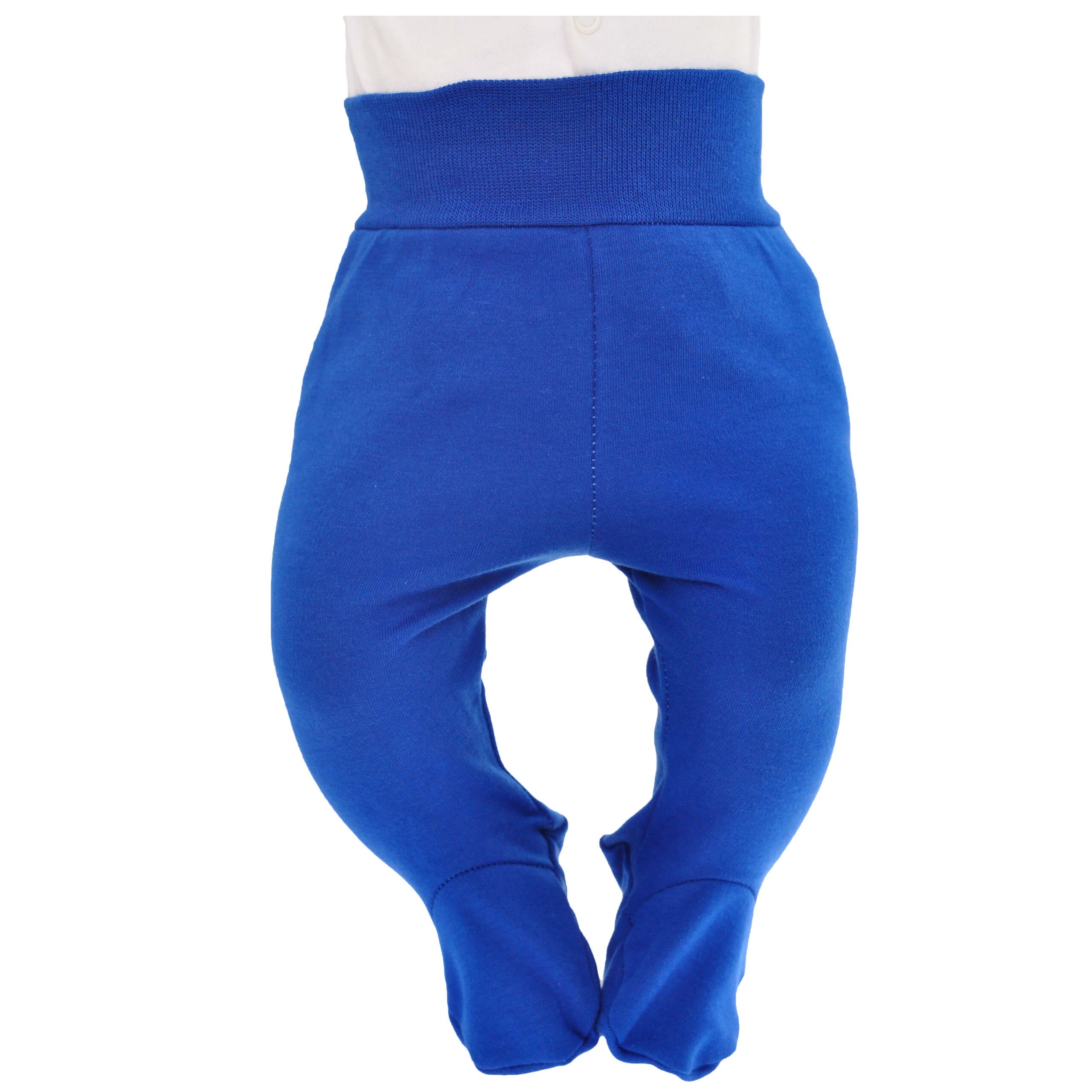 Bawełniane półśpioszki niemowlęce w kolorze chabrowym.