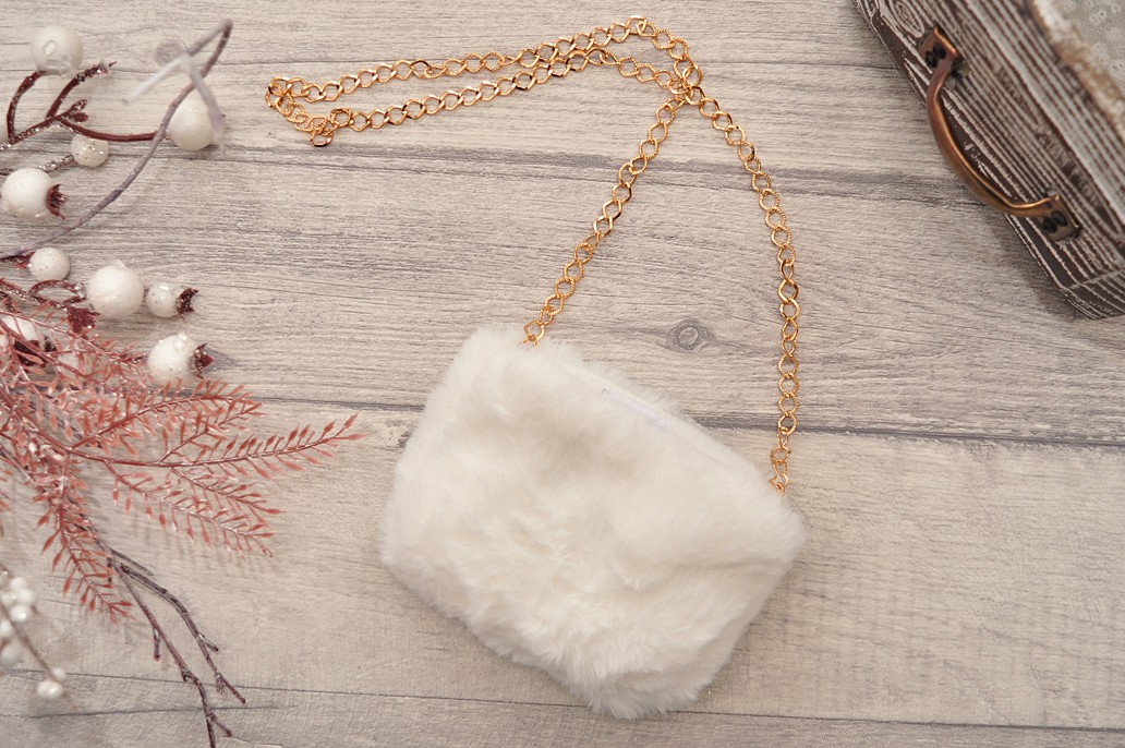Komplet dziewczęcy ecru futerkowa sukienka, bluzka, torebka