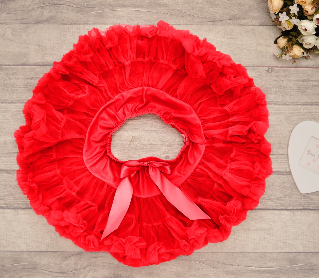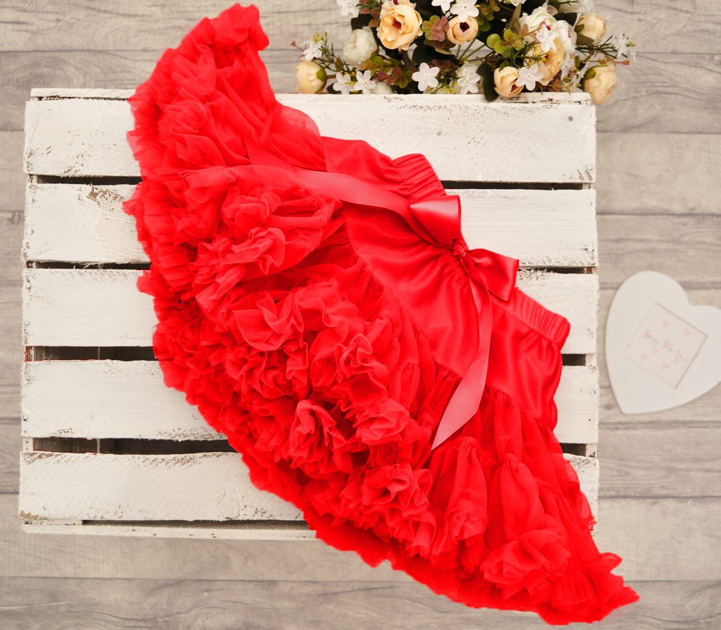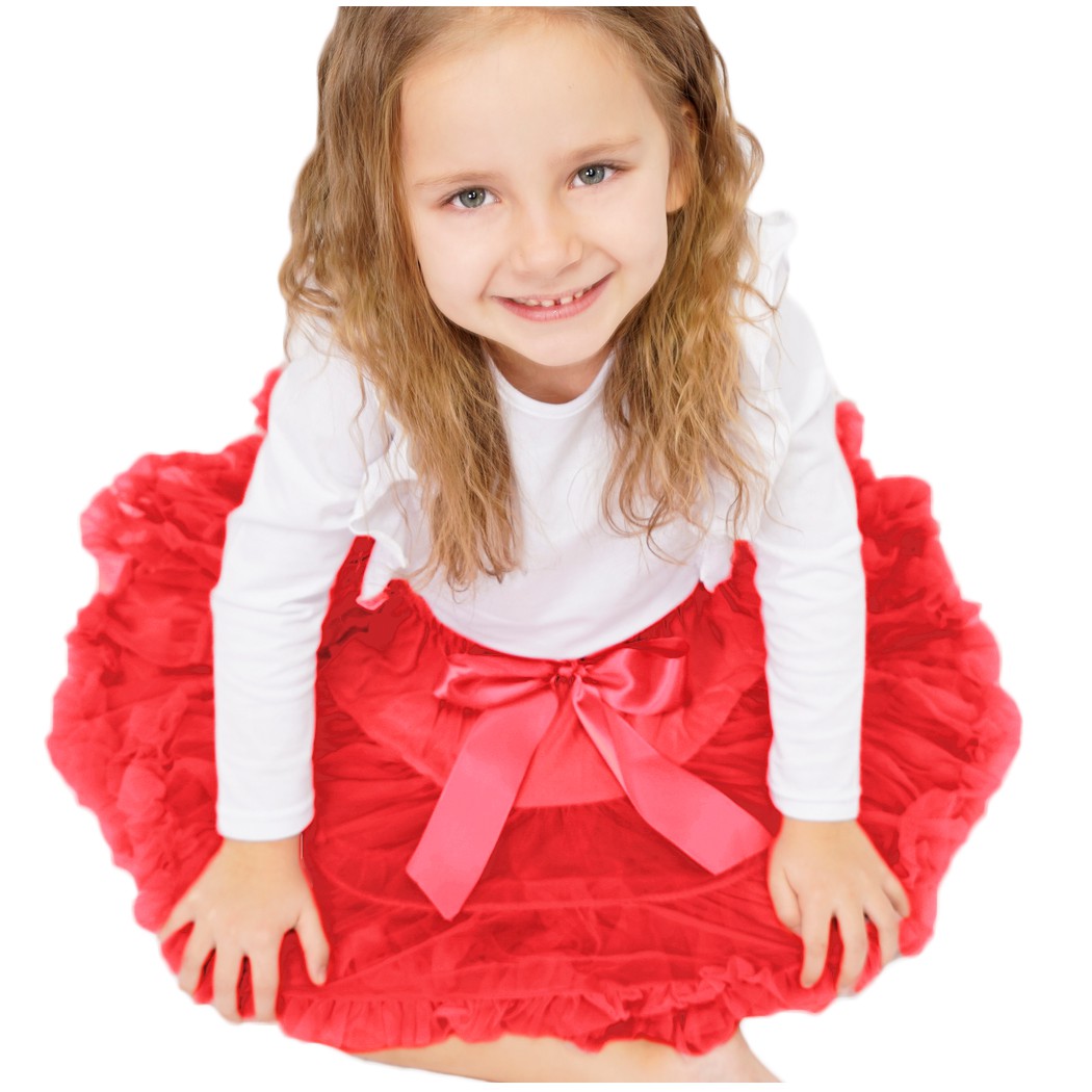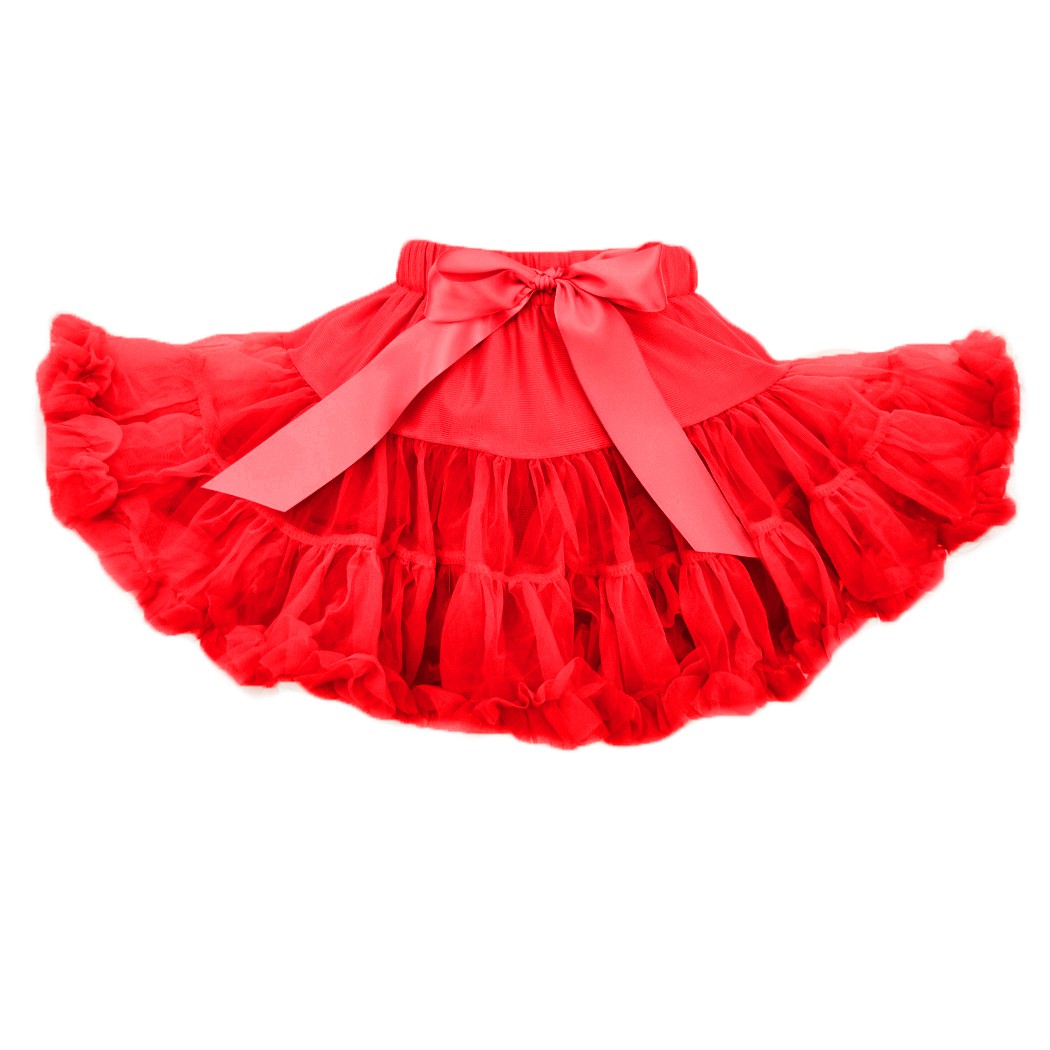 Tiulowa spódniczka dziewczęca z falbankami w kolorze soczystej czerwieni.