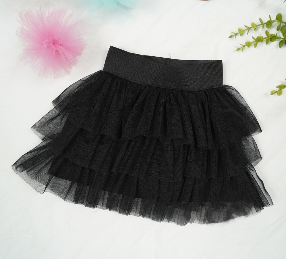 Tiulowa spódniczka dziewczęca z falbankami w kolorze czarnym.