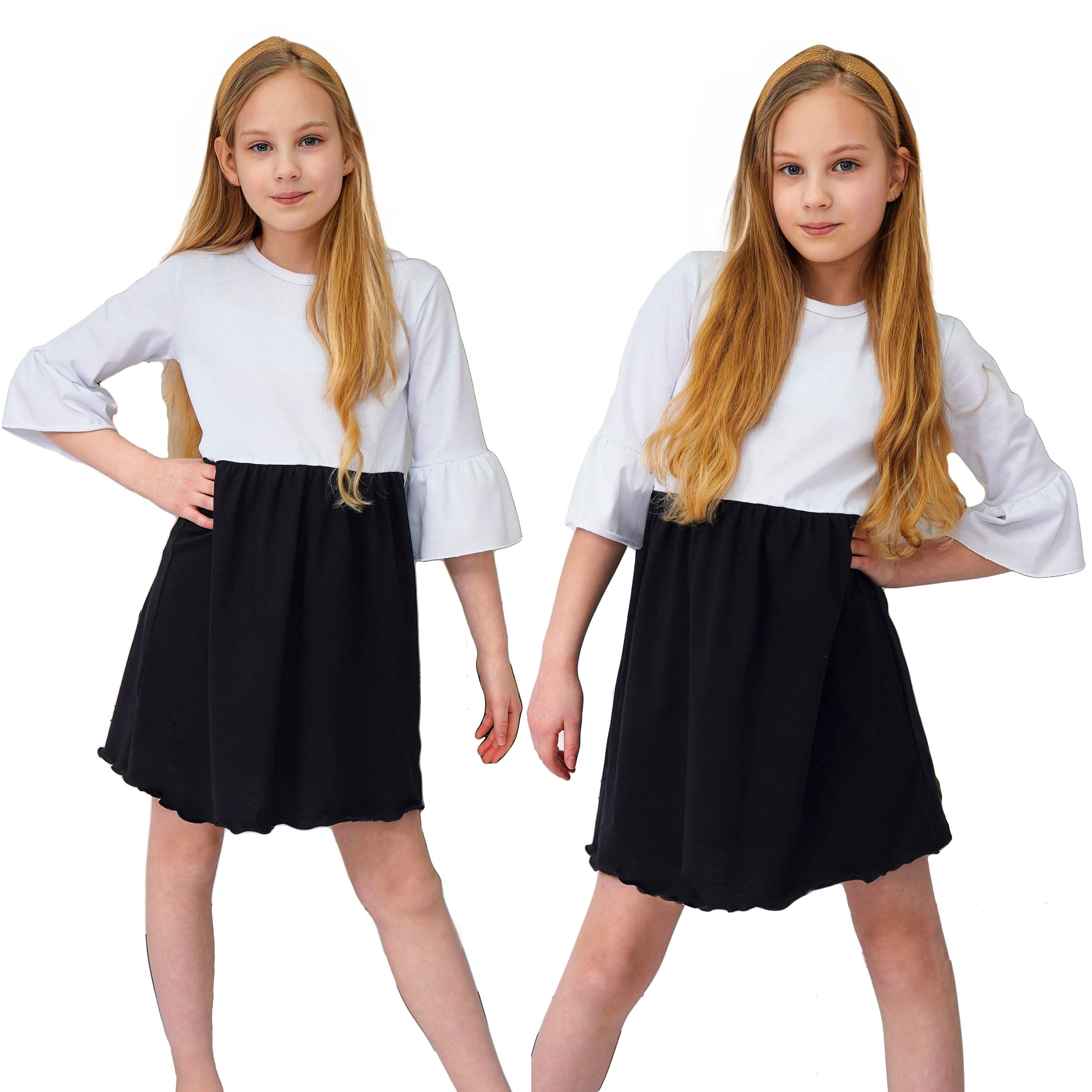 Sukienka dziewczęca z rękawem 3/4 kolor biało-czarny.
