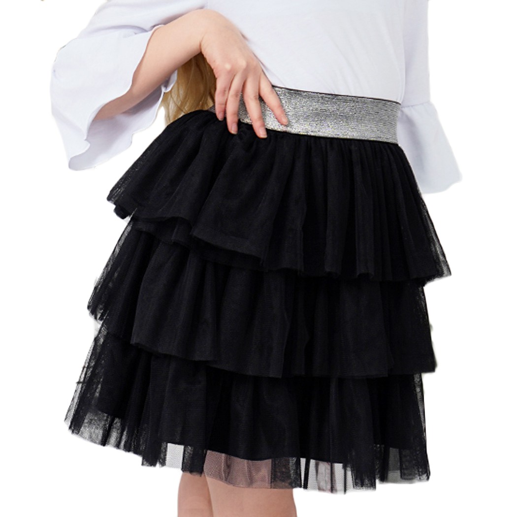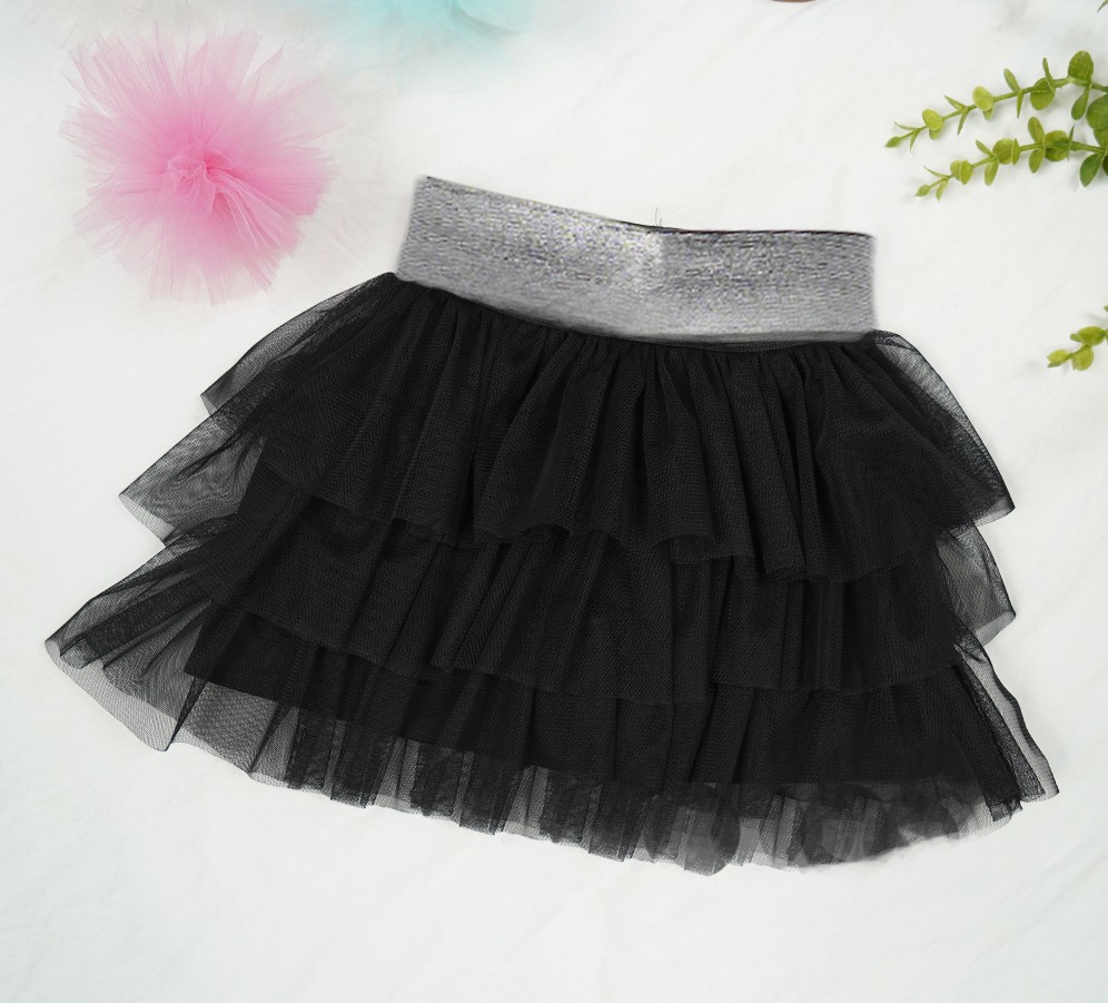 Tiulowa spódniczka dziewczęca z falbankami w kolorze czarnym.