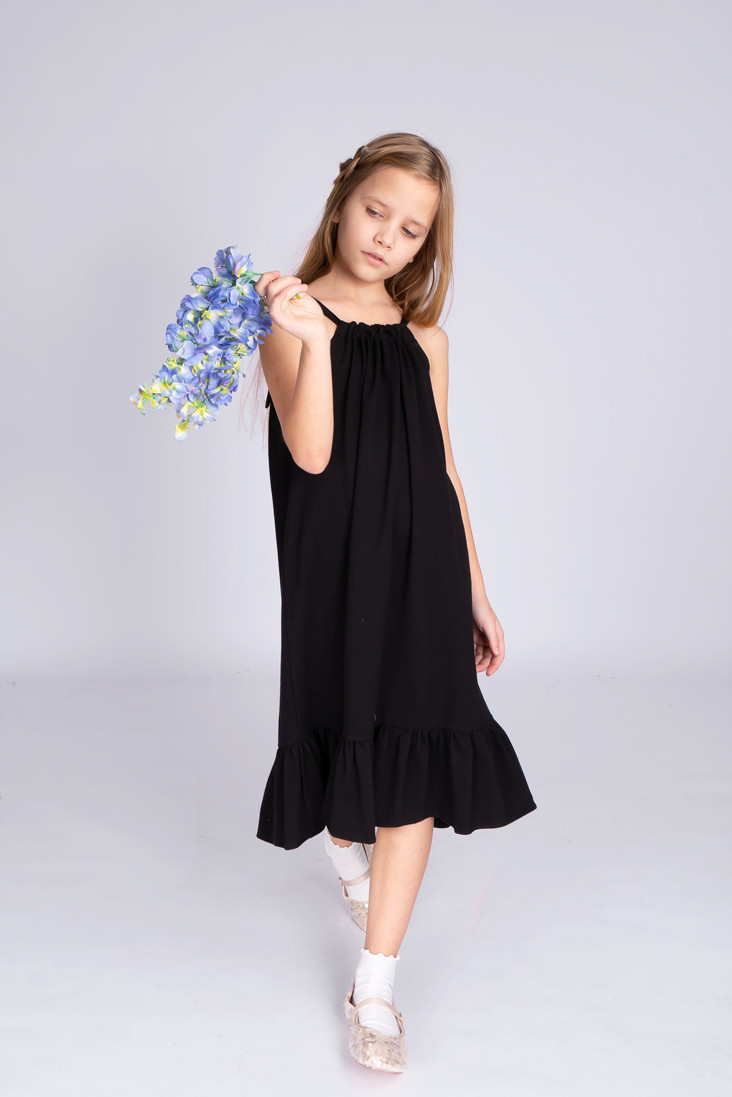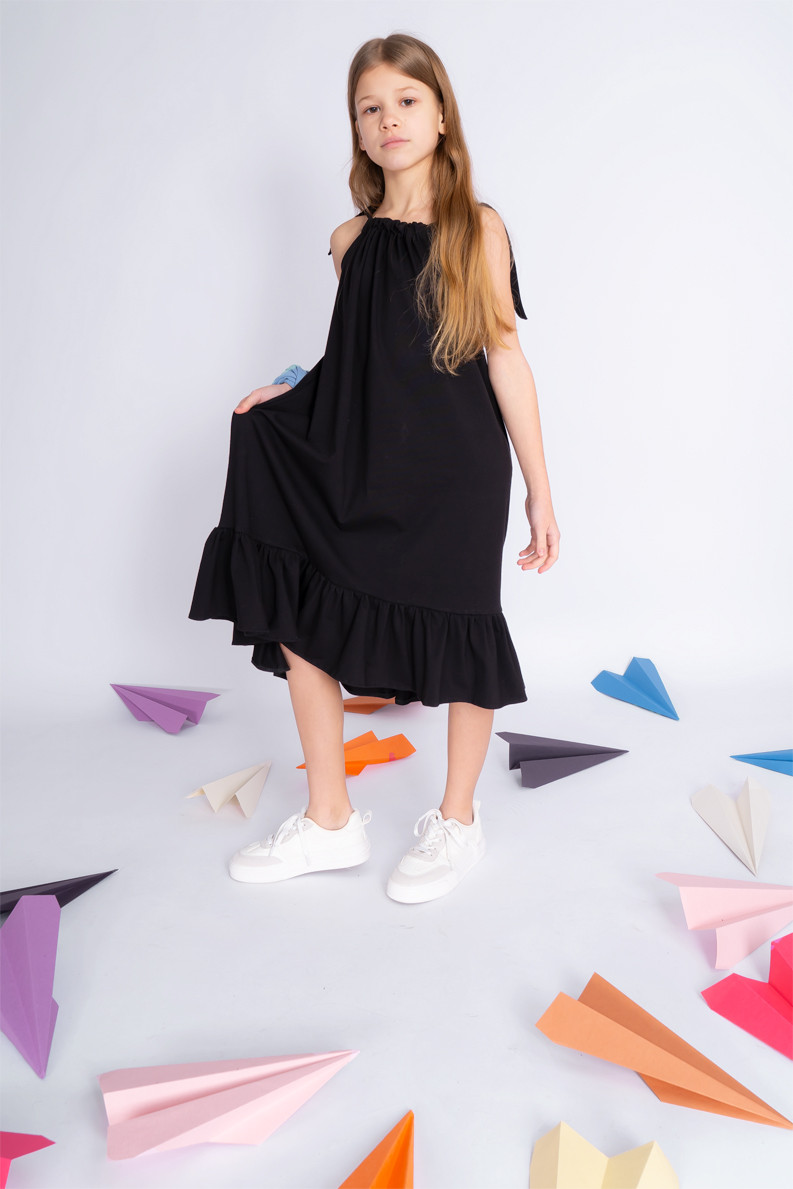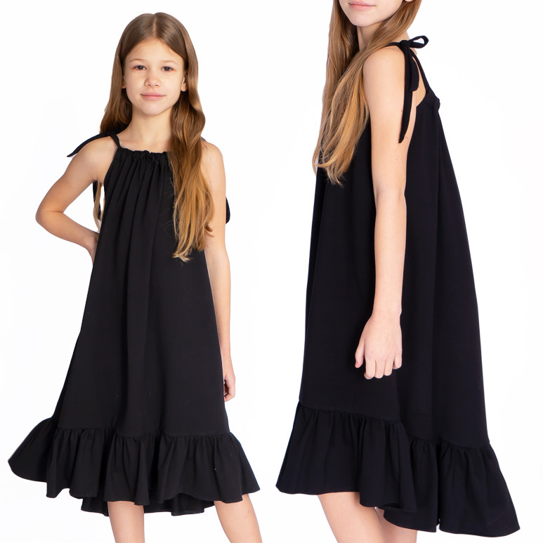 Czarna SUKIENKA SEA regulowana z falbanką na ramiączka