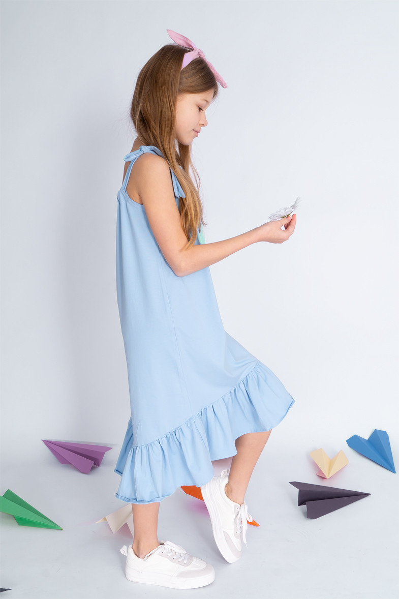 Letnia, bawełniana sukienka z przedłużonym tyłem w kolorze niebieskim