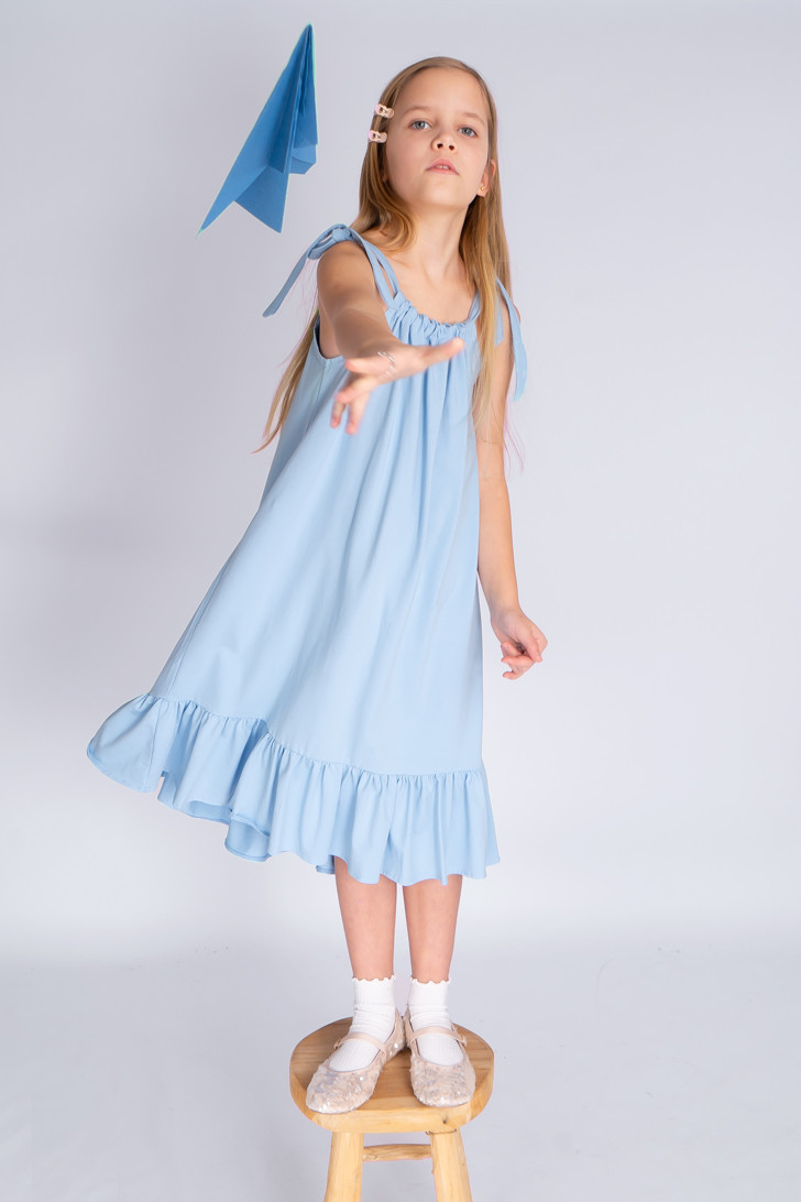 Niebieska SUKIENKA SEA regulowana z falbanką na ramiączka