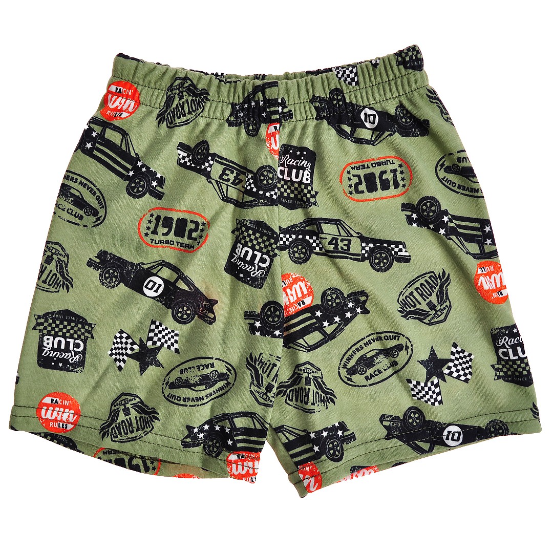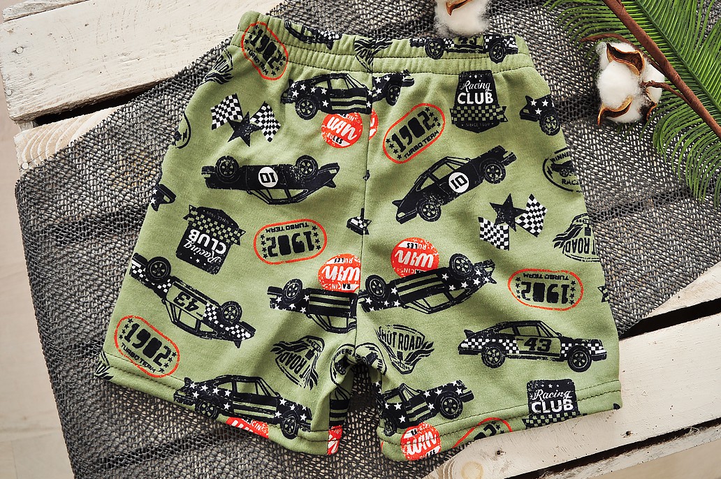 Krótkie spodenki dla chłopca z wyścigówkami.