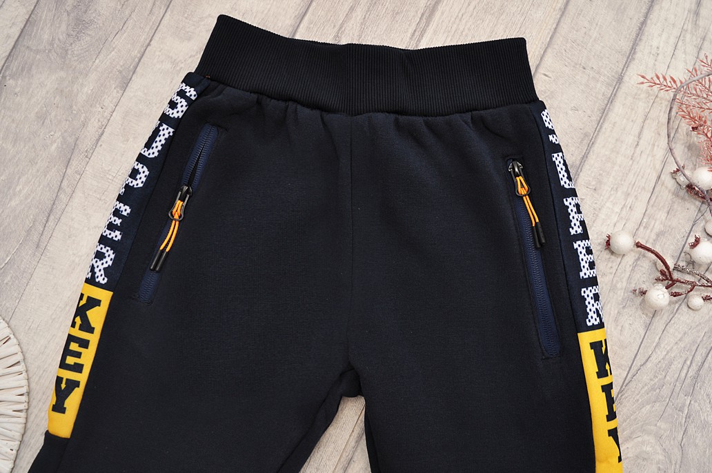 Granatowe SPODNIE ocieplane chłopięce spodenki dresowe SUPER KEY