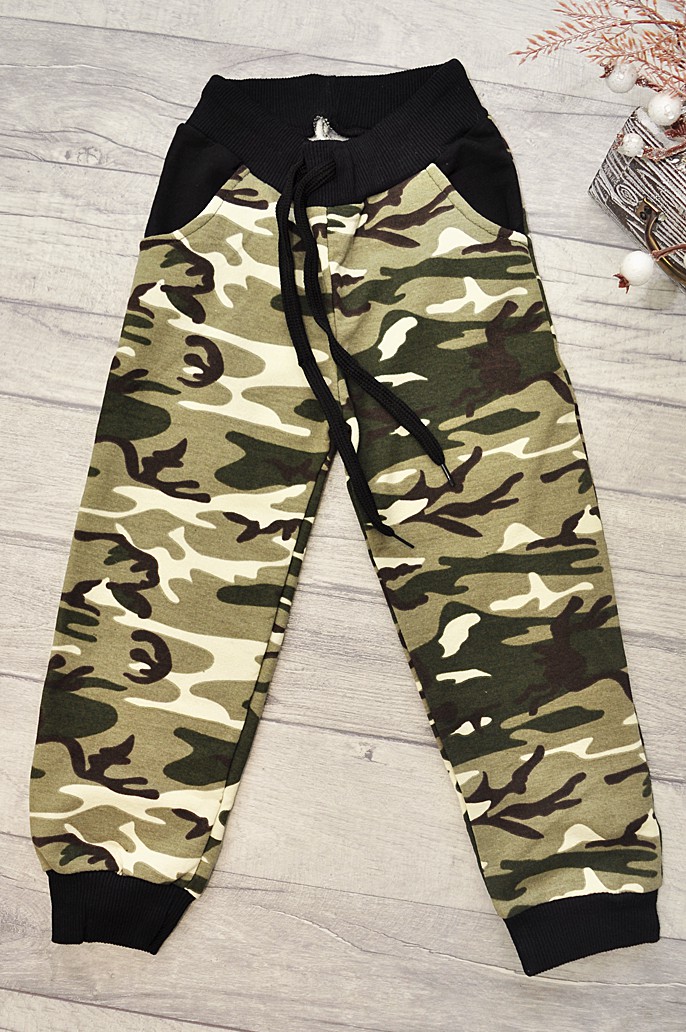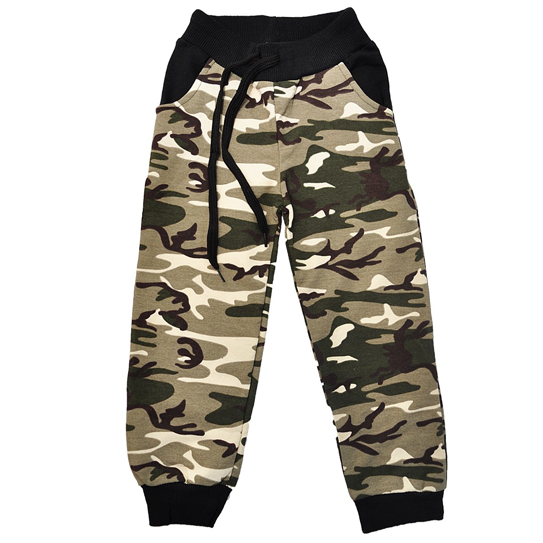 Ocieplane spodnie dresowe dla chłopca, khaki moro.