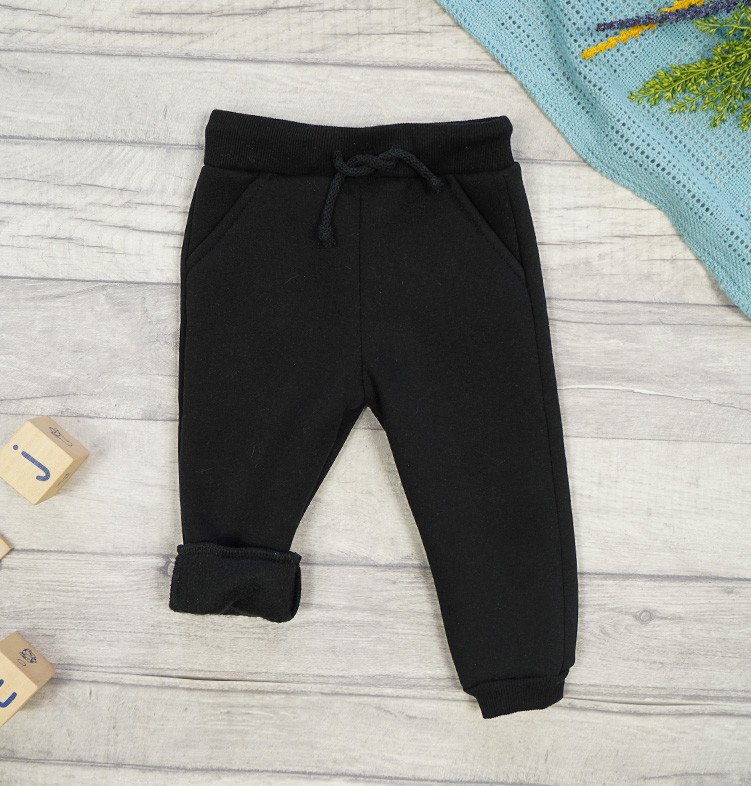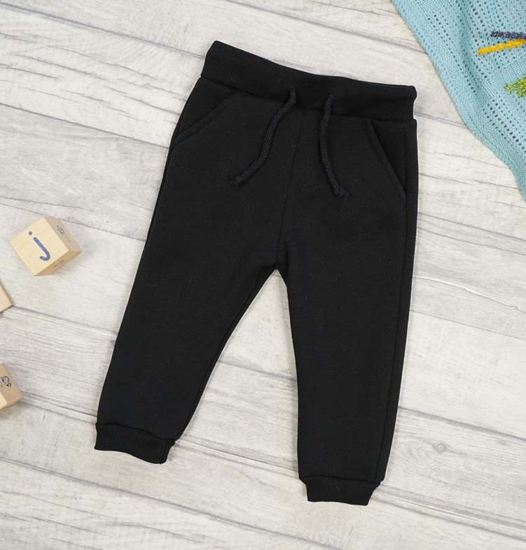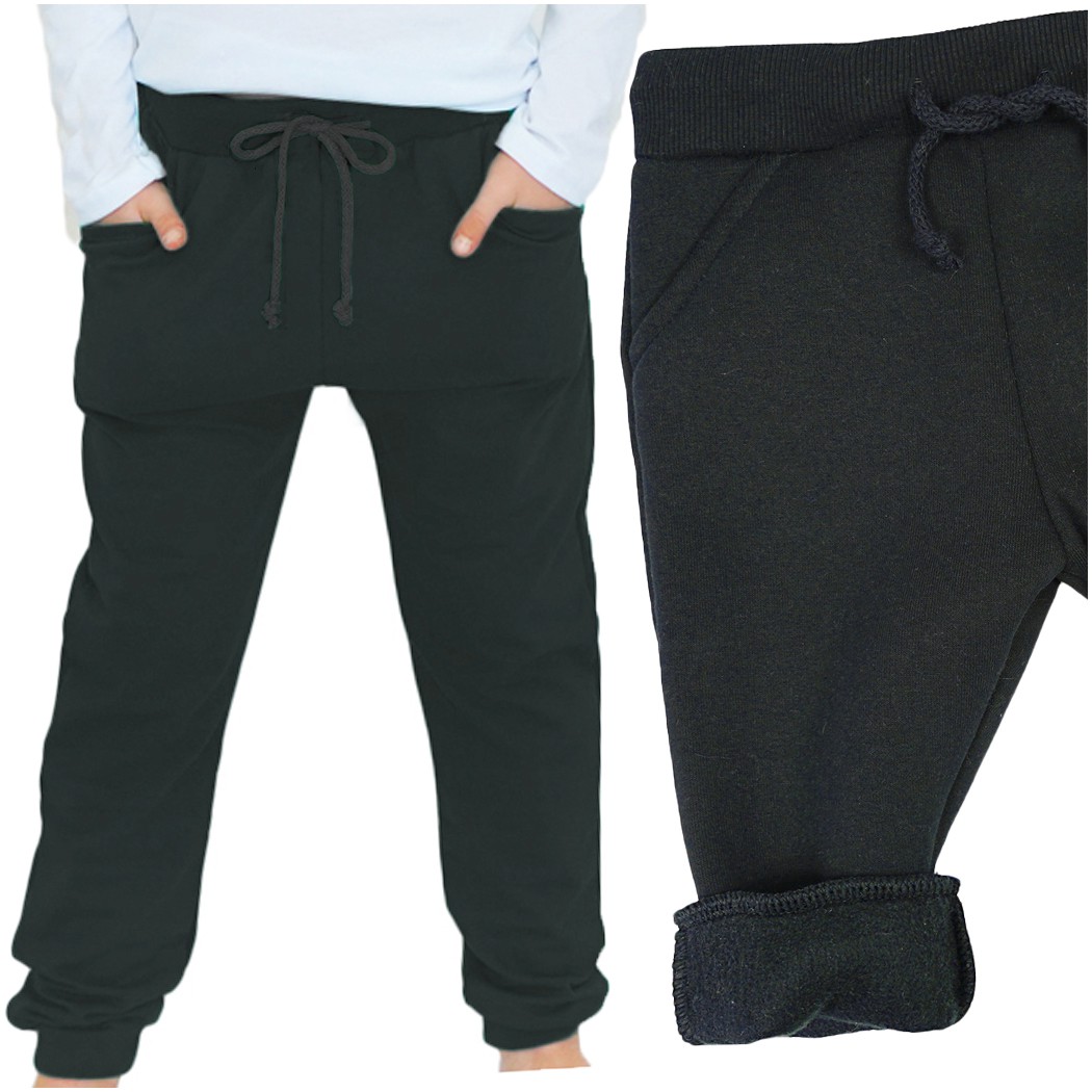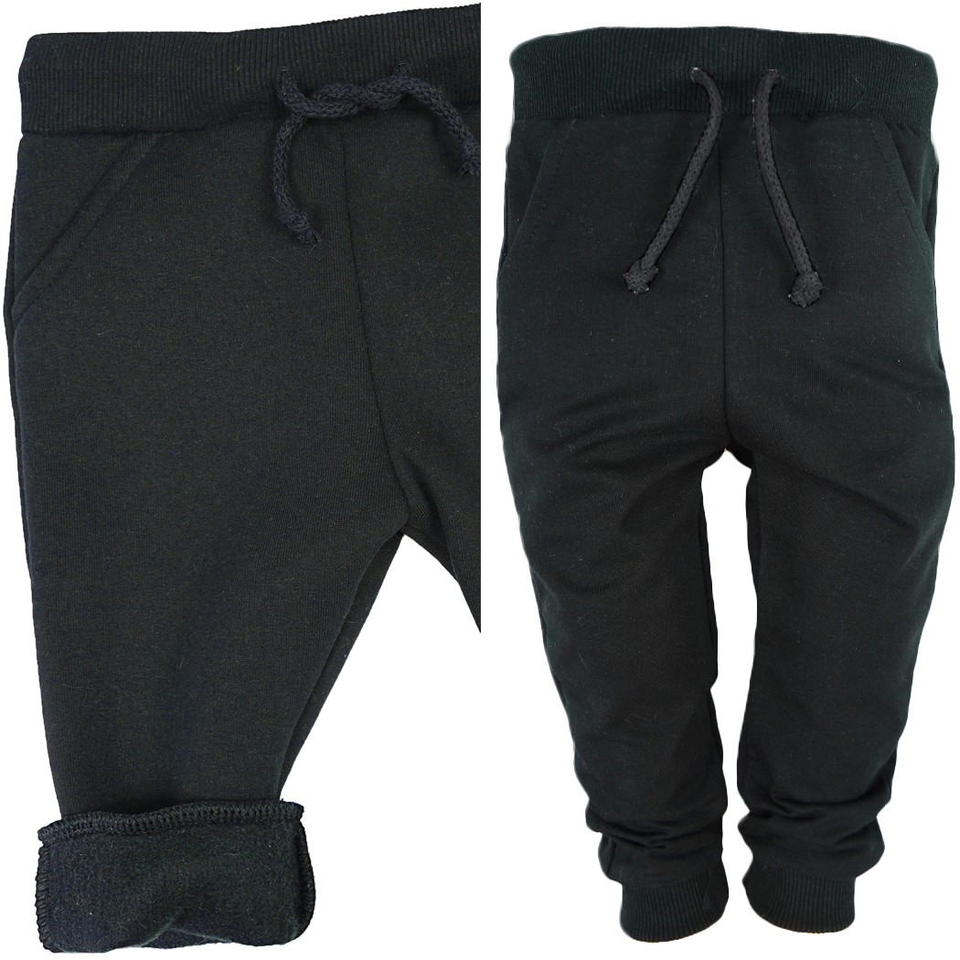 Jednokolorowe dresowe spodnie dziecięce, gładkie, bez wzorów z szerokim pasem, wewnątrz paska elastyczna guma oraz czarny sznurek umożliwiający regulowanie szerokości. Spodnie ocieplane od wewnątrz grubym, miękkim meszkiem. Posiadają dwie wewnętrzne kieszenie a nogawki zostały wykończone ściągaczem.