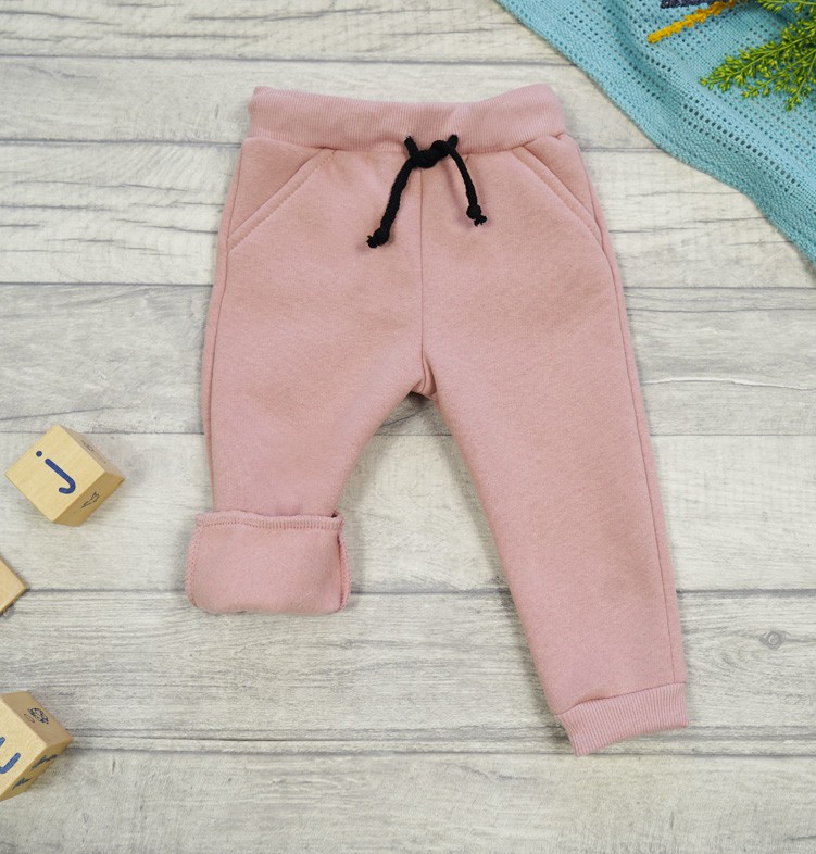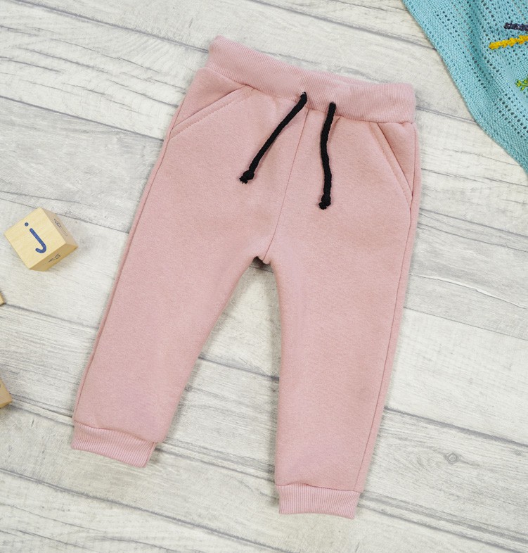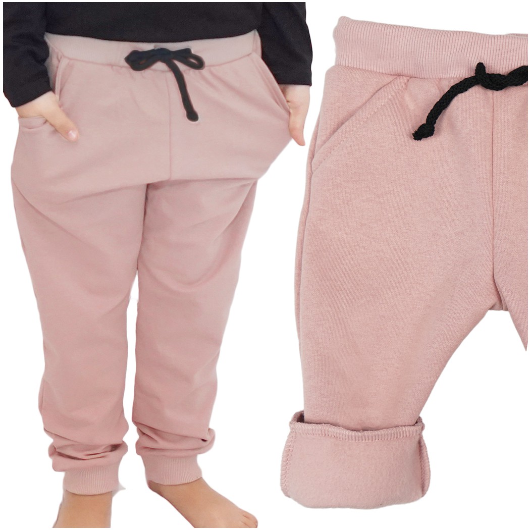 Ocieplane spodnie dresowe wiązane w kolorze pudrowego różu.