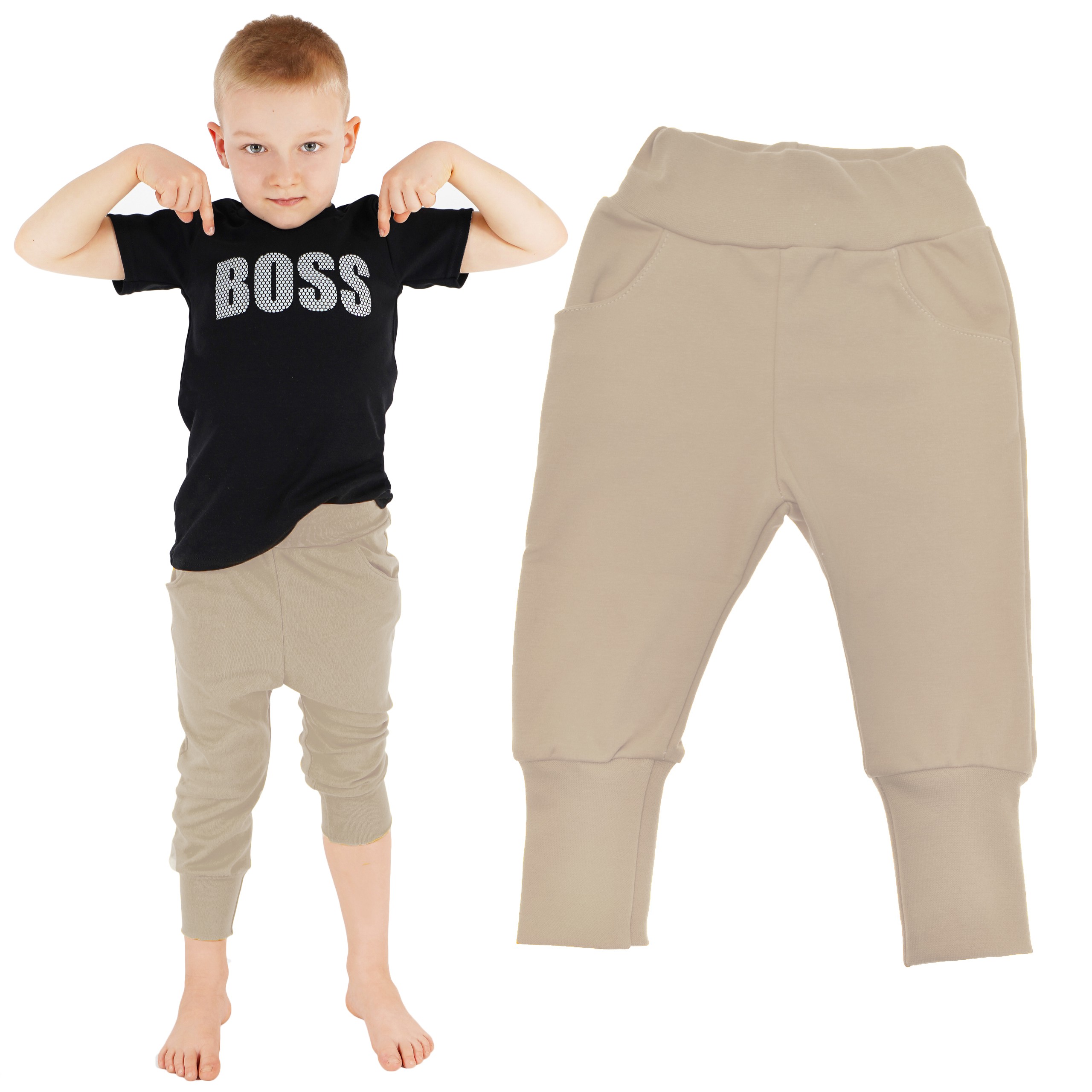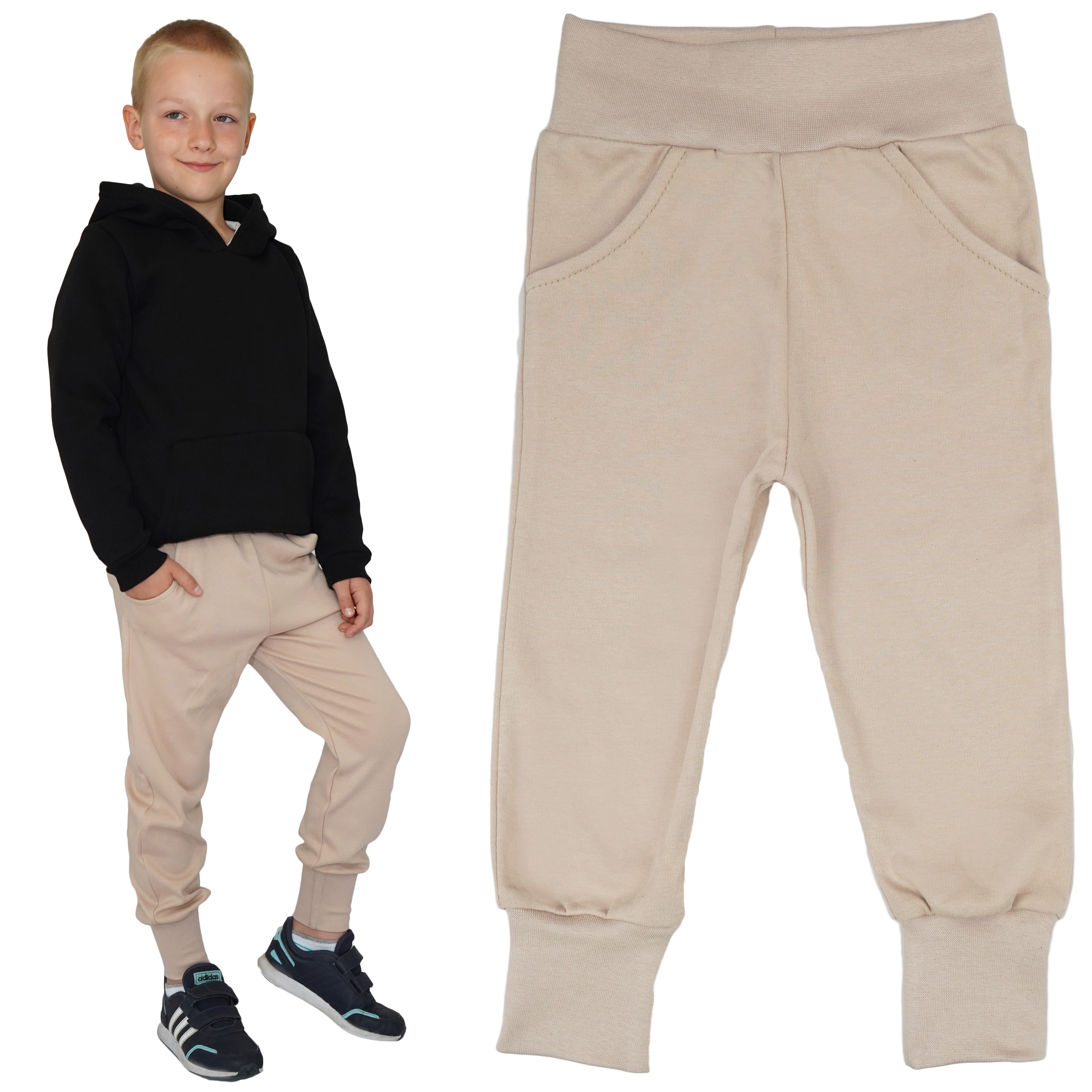 Nasza kolekcja bawełnianych spodni z wyciąganą gumką w pasie, kieszeniami i wywijanymi ściągaczami przy nogawkach to doskonałe rozwiązanie dla rodziców poszukujących wygodnych i praktycznych ubrań dla swoich dzieci.