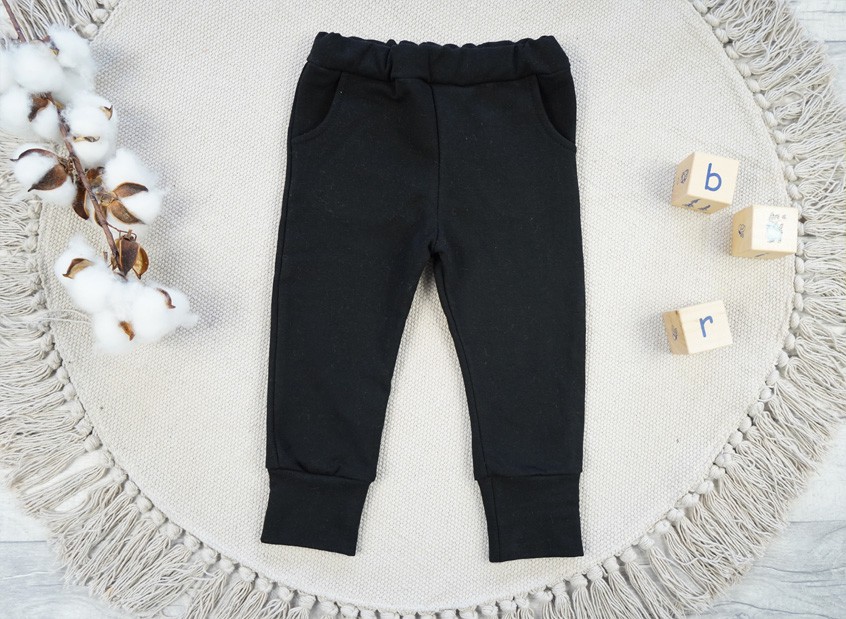 Spodnie z meszkiem dziewczęce i chłopięce w kolorze czarnym.
