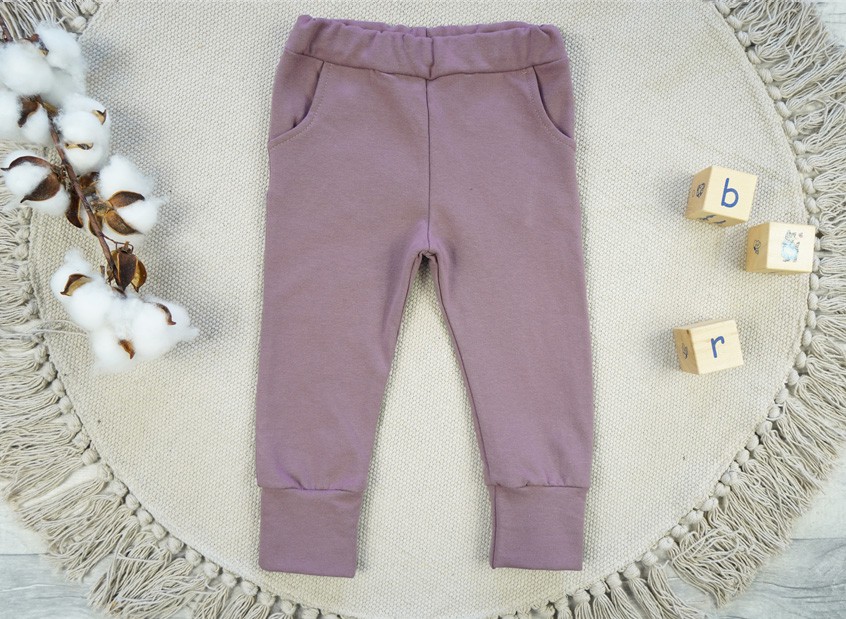 Spodnie z meszkiem dziewczęce i chłopięce w kolorze lila.