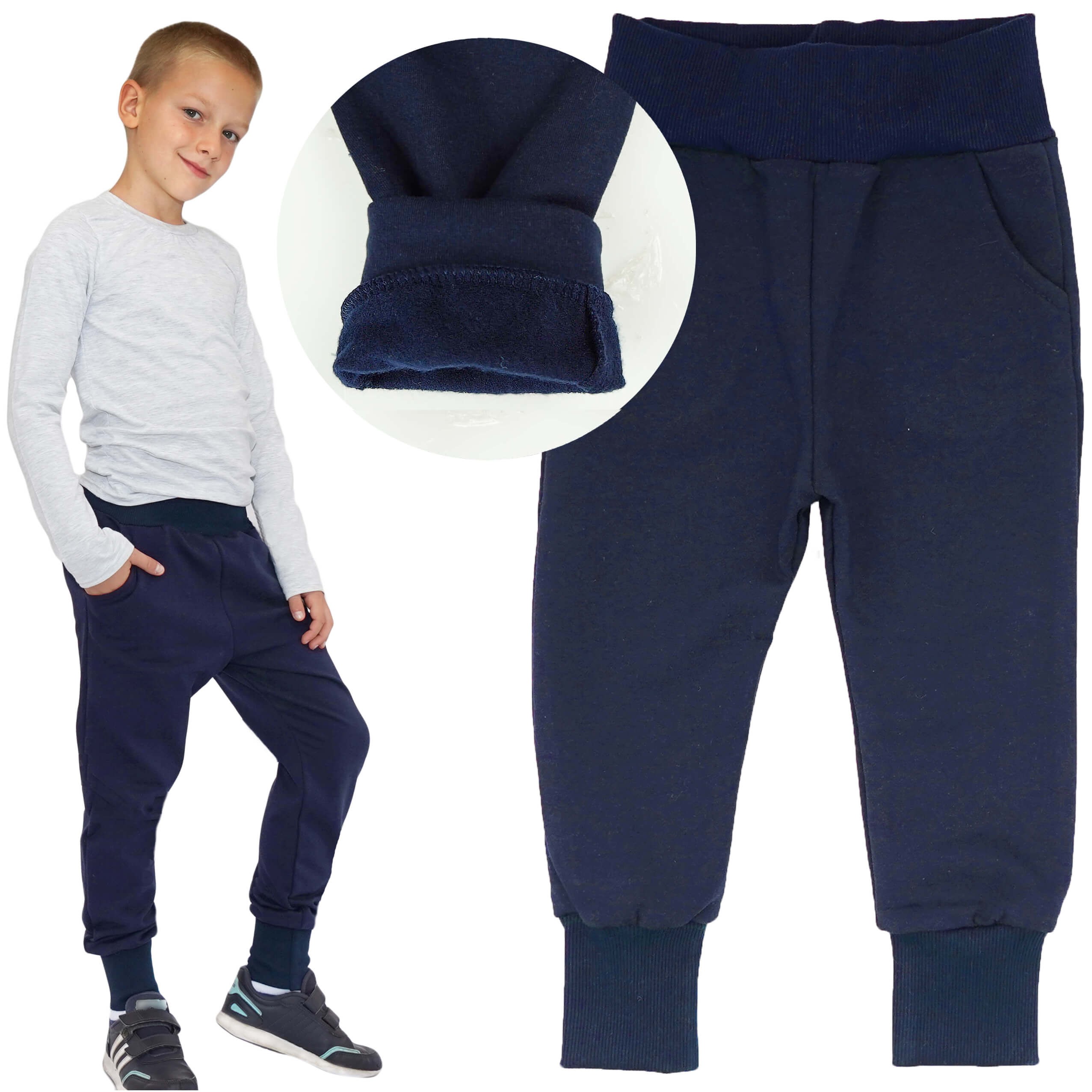 Granatowe spodnie ocieplane dziecięce na meszku: dziewczęce i chłopięce