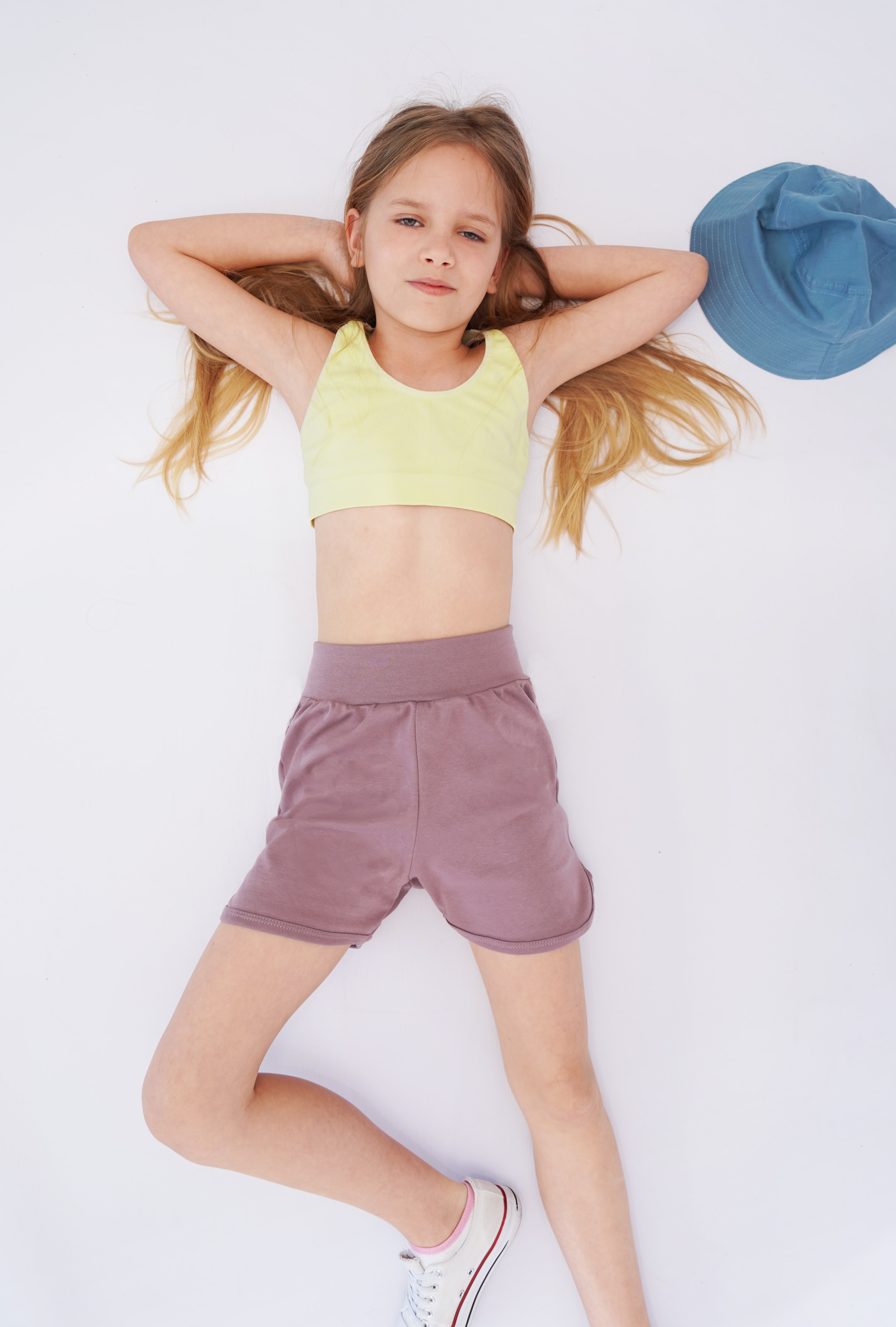 * krótkie spodenki lila dla dzieci wyprodukowano w Polsce