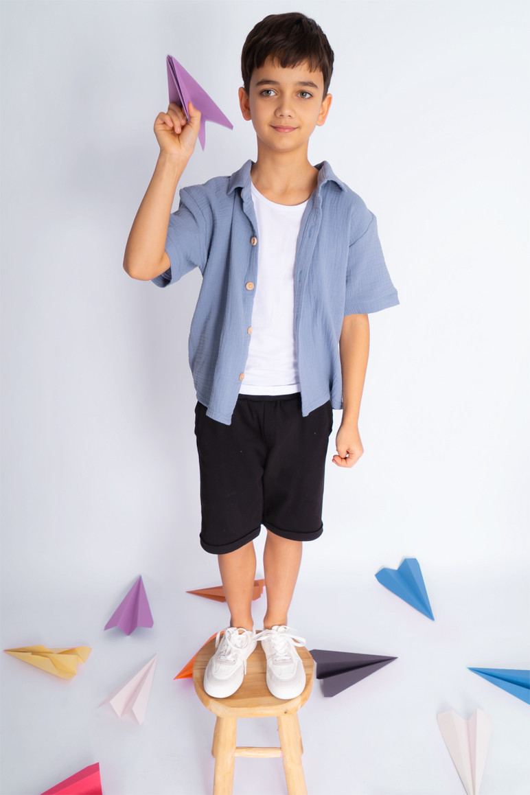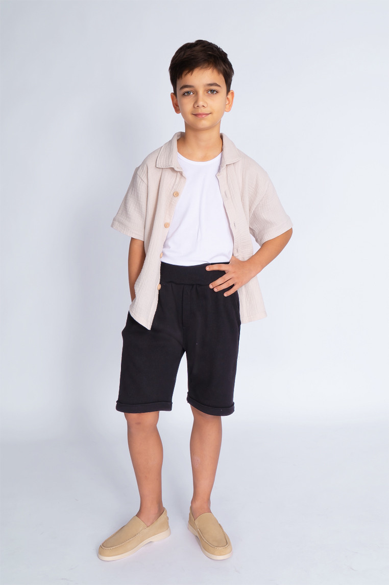 Te praktyczne czarne, chłopięce krótkie spodnie zarówno na co dzień jak i na różnego rodzaju okazje o wygodnym kroju i prążkowym materiale idealnie dopasowują się do kształtu ciała dziecka i nadążają za jego potrzebą ruchu.