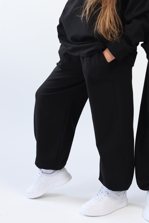 Spodnie dresowe ocieplane MOVE czarne NA MESZKU szerokie ze ściągaczami regulowane w pasie