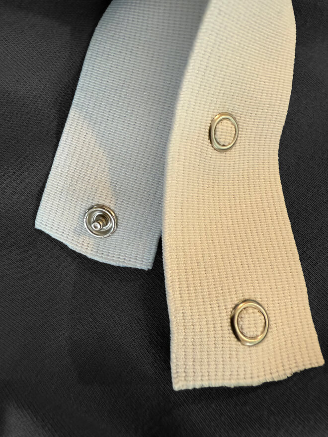 Regulowana gumka w pasie - spodnie w pasie posiadają regulowaną na cztery napy gumkę. Przy wewnętrznym szwie znajduje się otwór, przez który w łatwy sposób można ją wyregulować. Zakres regulacji wynosi 15 cm (5 cm - odległość pomiędzy napami). Istnieje możliwość zmniejszenia lub zwiększenia obwodu pasa. Funkcja ta została stworzona z myślą o dzieciach z różnymi typami sylwetek.