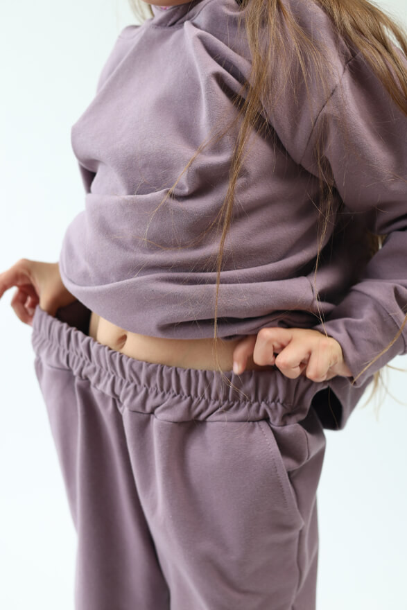 Spodnie dresowe ocieplane MOVE fioletowe NA MESZKU szerokie ze ściągaczami regulowane w pasie