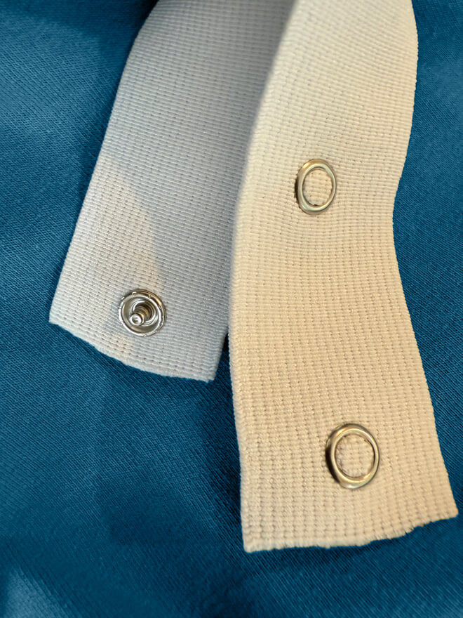 Regulowana gumka w pasie - spodnie w pasie posiadają regulowaną na cztery napy gumkę. Przy wewnętrznym szwie znajduje się otwór, przez który w łatwy sposób można ją wyregulować. Zakres regulacji wynosi 15 cm (5 cm - odległość pomiędzy napami). Istnieje możliwość zmniejszenia lub zwiększenia obwodu pasa. Funkcja ta została stworzona z myślą o dzieciach z różnymi typami sylwetek.