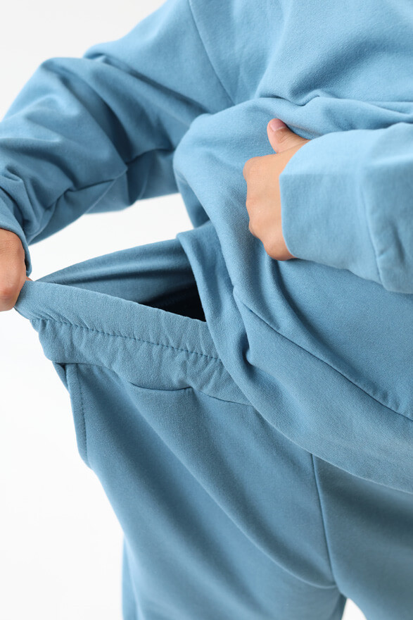 Spodnie dresowe ocieplane MOVE niebieskie NA MESZKU szerokie ze ściągaczami regulowane w pasie